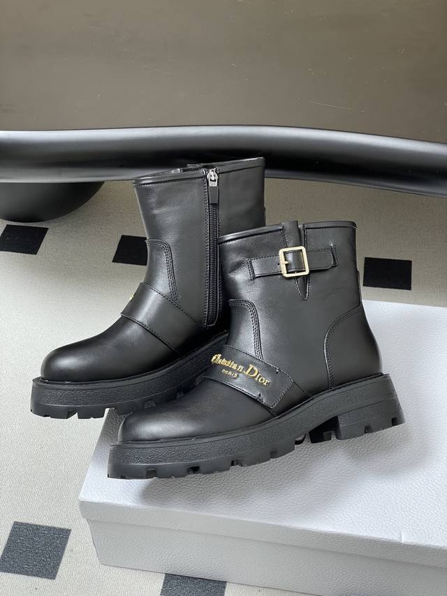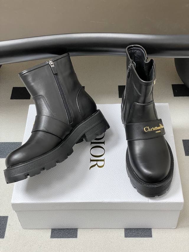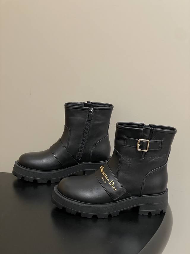 2025秋冬新款Dior迪奥D-Quest 及踝靴Cd字母金属扣厚底短靴搭扣机车靴 DDD 这款D-Quest 及踝靴全新演绎经典机车风格靴子,彰显Dior 的高订风格经典标识。采用黑色牛皮革精心制作,装饰性饰带点缀以金色饰面金属Christian Dior paris 标志提升格调。厚实的凹口橡胶鞋底更显休闲优雅。 DDD 鞋面:牛皮 DDD 内里垫脚:羊皮 DDD 鞋底:原版开模Eva橡胶大底 DDD 码数:35-39 40.41定做不退换 DDD