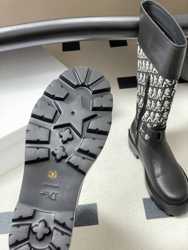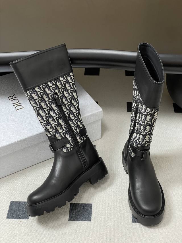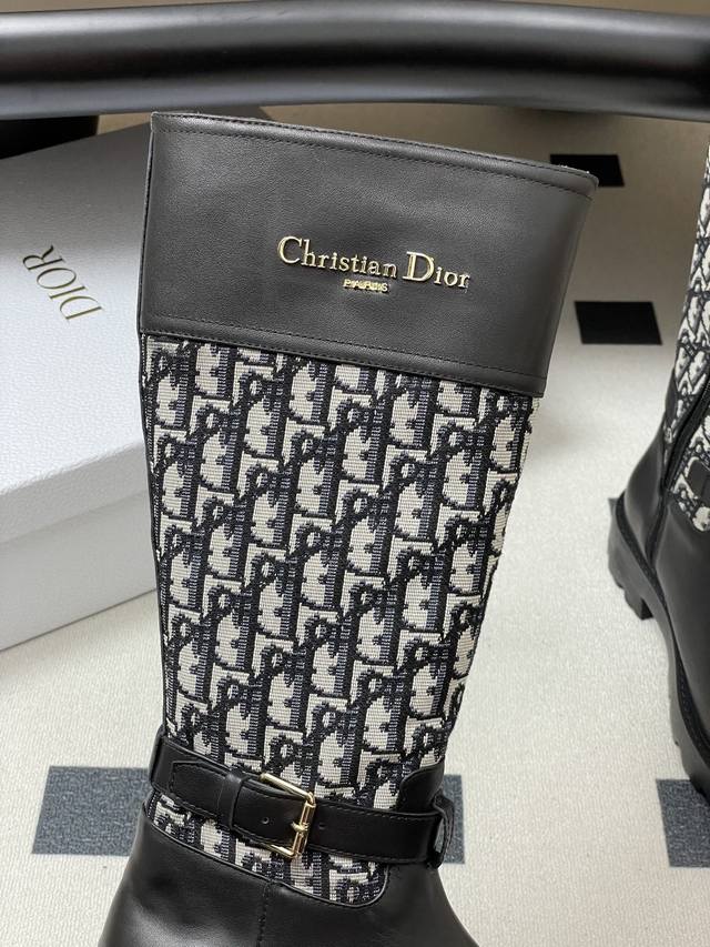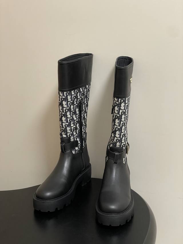 2025秋冬新款Dior迪奥D-Town 靴子黑色牛皮革和尼龙搭配藤格纹图案刺绣中筒骑士靴经典Cd字母扣布面一脚蹬直筒长靴 DDD 这款 D-Town 靴子醒目时尚。黑色牛皮革和尼龙组合鞋面,尼龙饰以藤格纹缉面线,侧面饰以金色饰面金属Christian Dior paris 标志和搭配搭扣的可调节系带提升格调,突显脚踝线条。搭配厚实而轻盈的凹口鞋底,可为各式造型增添时尚风格。 DDD 鞋面:小牛皮原版定做进口科技电绣面料 DDD 内里垫脚:混种羊皮 DDD 鞋底:原版开模Tpu橡胶大底 DDD 码数:35
