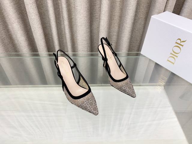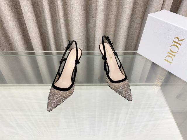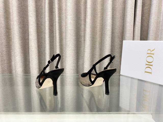 Dior 迪奥 2025春夏走秀新款凉拖鞋Bling...Bling...水晶鞋 Capture一字带高跟穆勒女鞋 明星同款水钻方头藤格纹图案猫跟拖鞋 市面顶级高端版本 独家发售