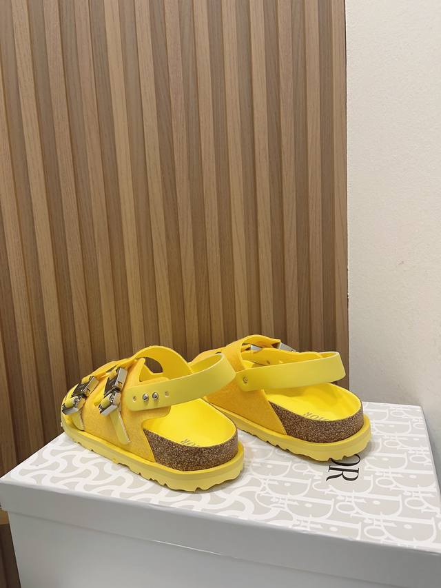 Birkenstock x Dior情侣款全球限量联名款,联名单品重新诠释 TOKIO 穆勒鞋和 MILANO 凉鞋这两款勃肯标志性单品,将实用功能与优雅风范相