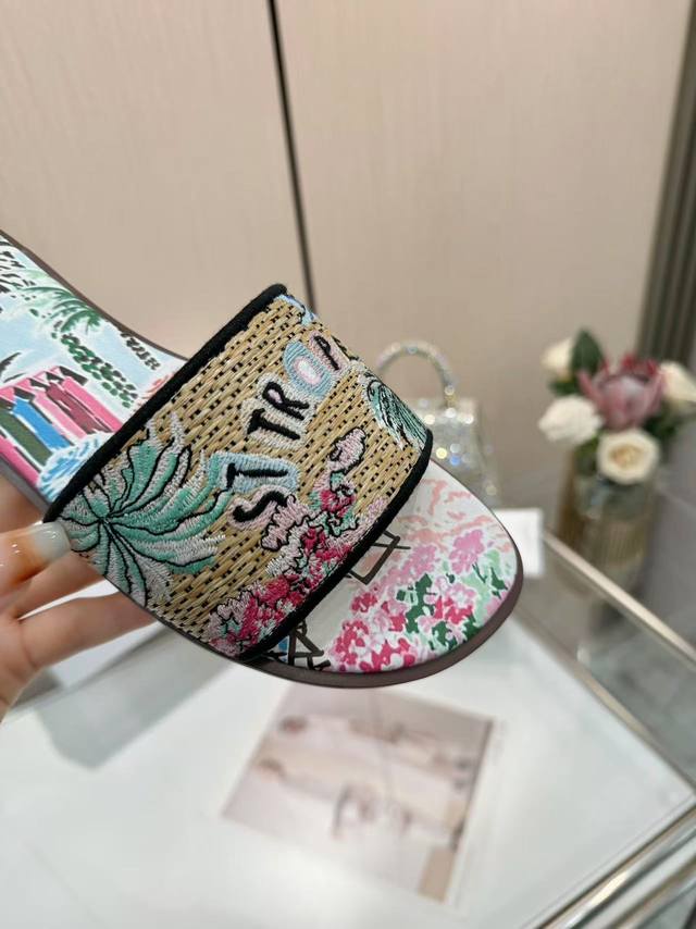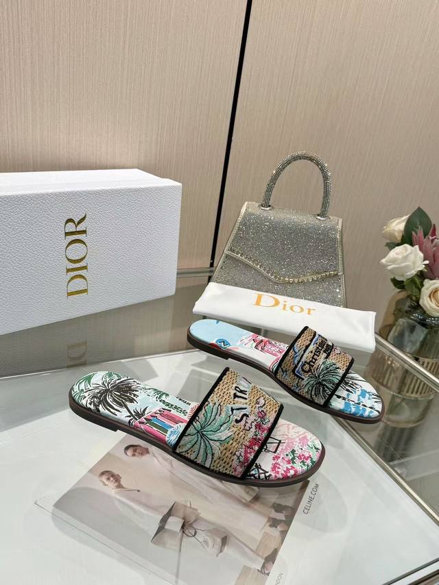 Cd迪奥女士老花刺绣拖鞋,羊皮内里,码数36-43,橡胶底 ,皮底 DDD