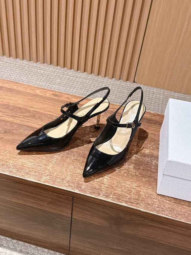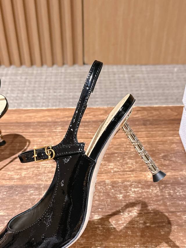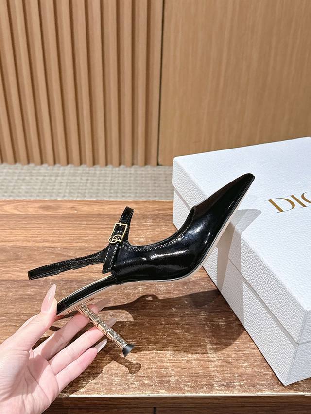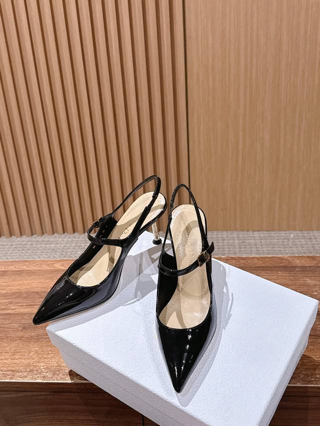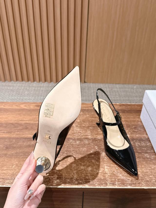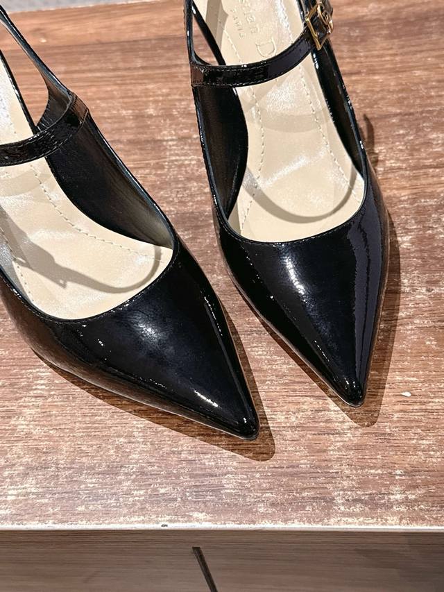FFF Christian Dior 迪奥26Ss早春新款方头后空低跟玛丽珍鞋 DDD 将复古方头玛丽珍鞋的经典轮廓与后空设计结合,方头弱化甜美元素,后空增添灵动性,打造法式复古与现代简约的平衡。鞋面采用细腻的哑光皮革,质感柔软且有高级哑光肌理,无多余装饰,通过材质本身凸显鞋型的简约美感。 DDD 双条细绑带搭配小巧金属搭扣,鞋内印刻“Christian Dior”标识,后空鞋跟处的细带贴合脚踝,兼顾美观与穿着稳定性。延续Dior的法式优雅,鞋型低跟设计兼顾舒适度,是复古玛丽珍鞋的现代演绎,适配日常通勤与