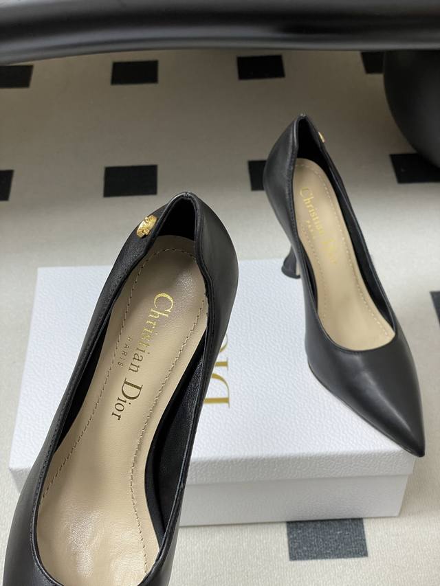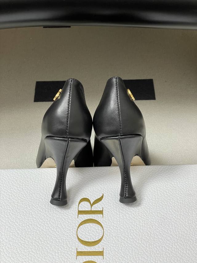 FFF DDD 26Ss春夏新款Dior迪奥最新走秀款Cd字母五金扣鳄鱼纹皮面尖头高跟鞋复古风高跟单鞋 DDD Dior 2026春夏系列高跟鞋,由Jonathan Anderson设计,黑色尖头+金色Cd金属扣,优雅又有现代感。细高跟9.5Cm,修饰腿型,拉长比例,适合职场、宴会等正式场合。鞋面优质皮革,触感柔软,穿着舒适。Cd金属扣是Dior经典标志,彰显品牌历史与创新。整体设计融合经典与玩味,是现代女性气质与自信的象征。 DDD 鞋面:牛皮 羊猄皮 DDD 内里垫脚:羊皮 DDD 鞋底:意大利真皮大
