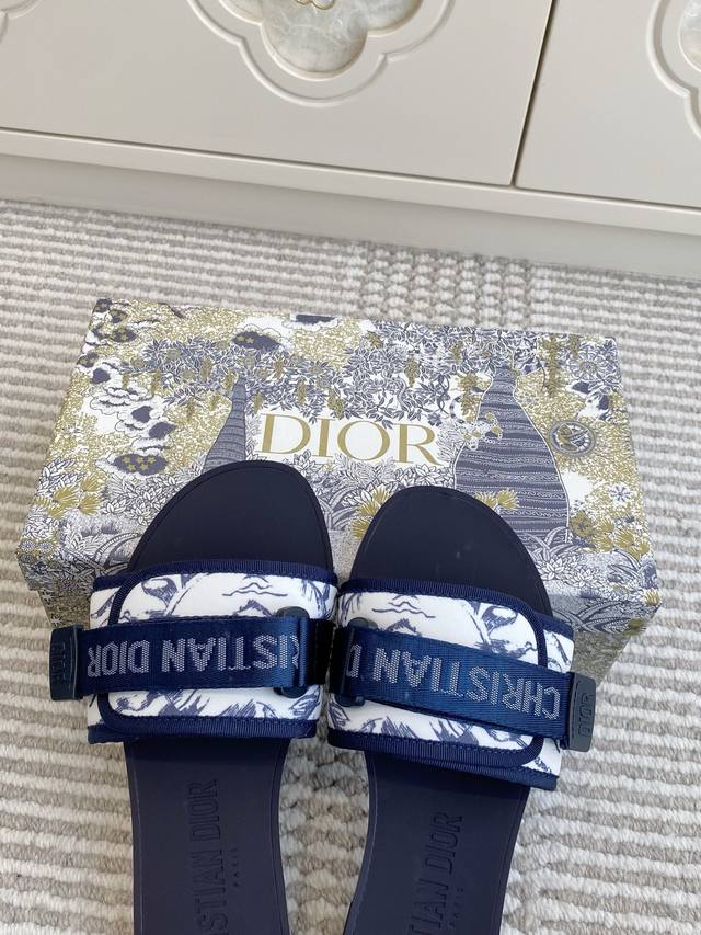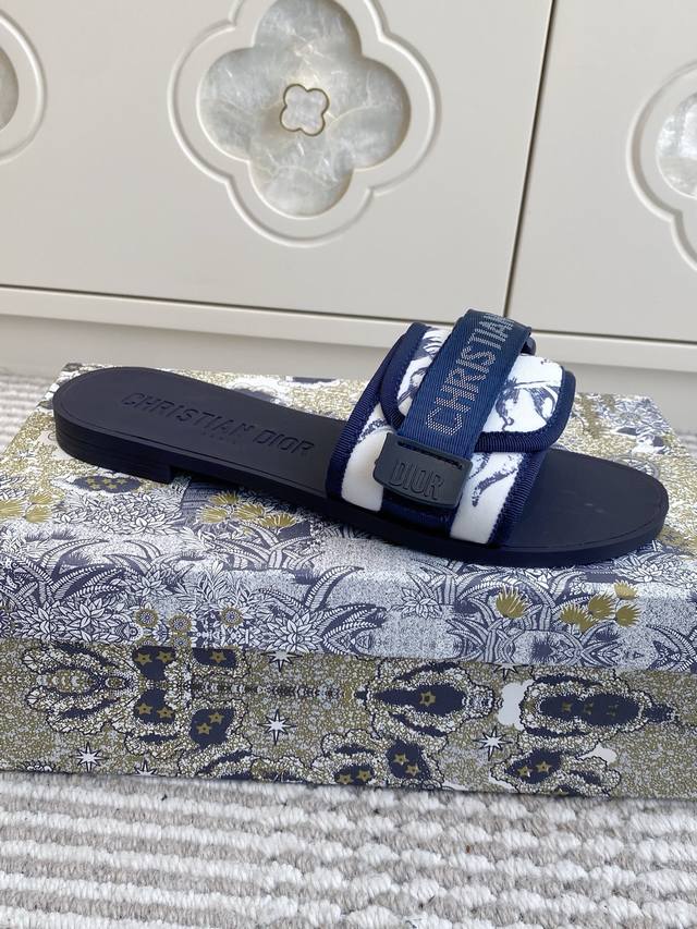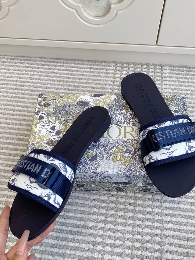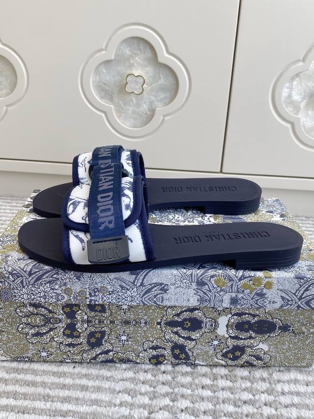 / Dio*迪奥 经典款Evolution凉拖棉质面料魔术贴Oblique印花一字拖鞋橡胶Cd字母平底凉拖鞋 DDD 这款Dio*Evolution凉拖是一款经典单