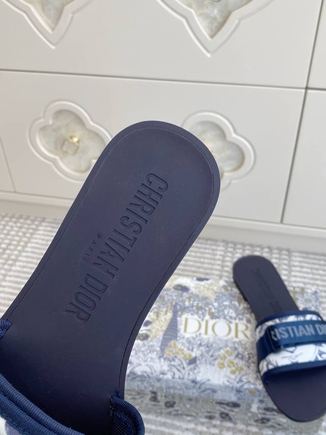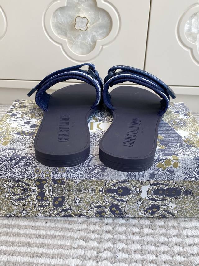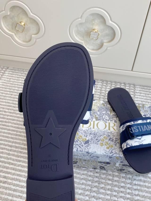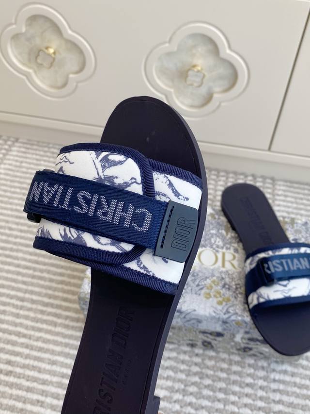 DDD Dior迪奥 经典款Evolution凉拖棉质面料魔术贴Oblique印花一字拖鞋橡胶Cd字母平底凉拖鞋 DDD 这款Dior Evolution凉拖是