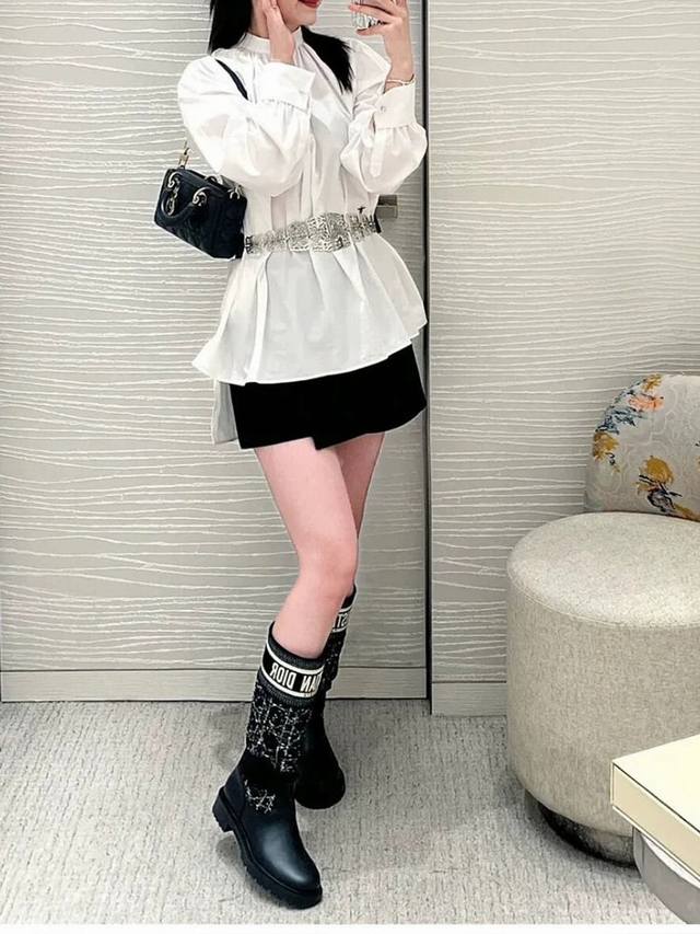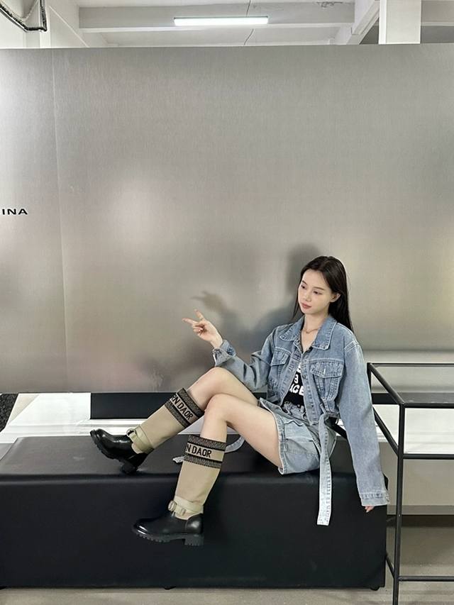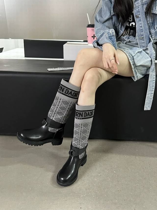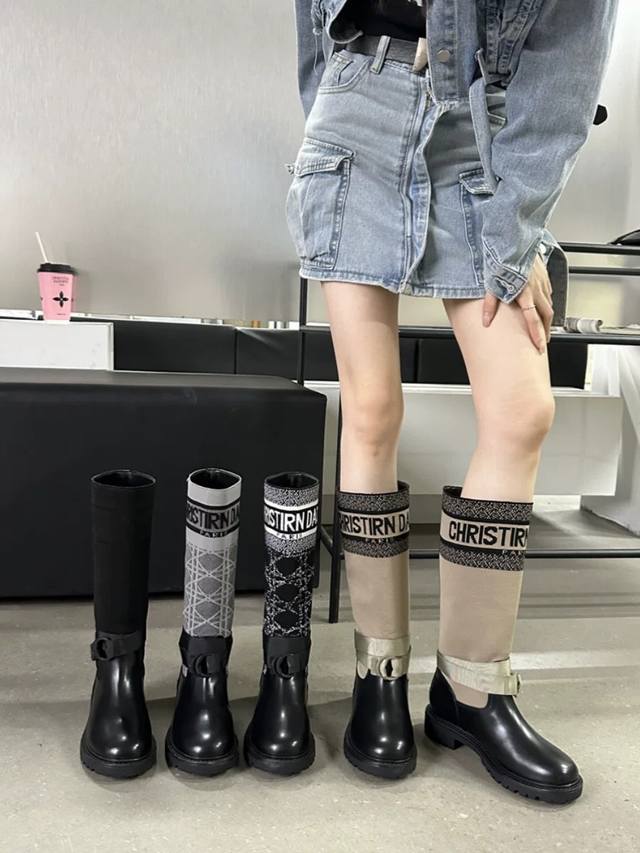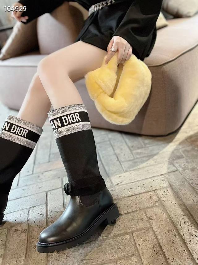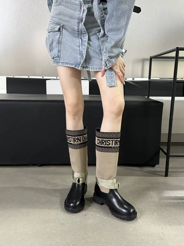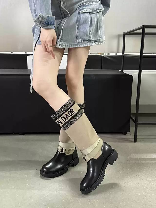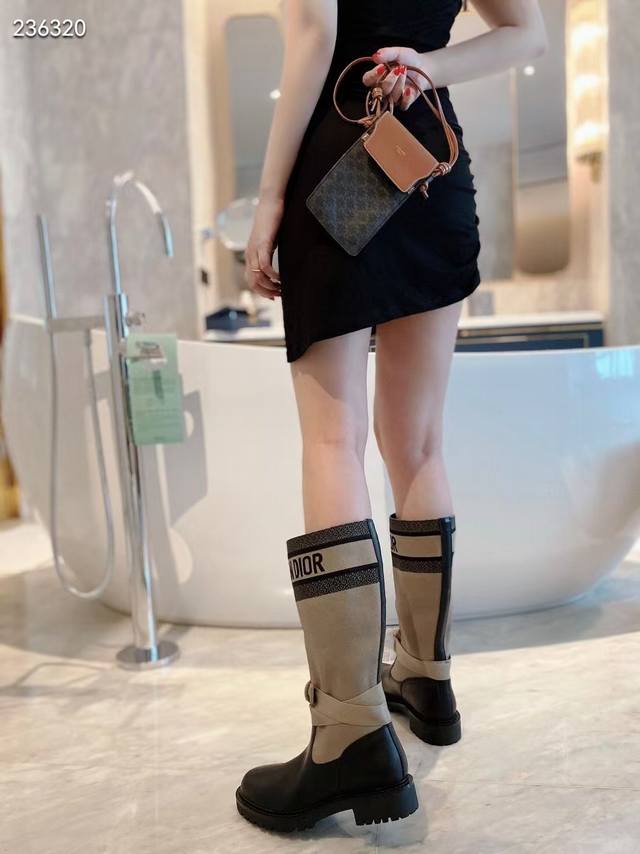 Dior拼色 秋冬新款靴子 ,秋冬最新电绣拼色字母Logo,圆头高筒骑士女靴,明星 那尔那茜同款,易梦玲同款。 DDD 材质:头层牛皮拼接电绣面料,羊皮内里垫脚,原版开模Tpu大底 DDD Size:35-40码 DDD