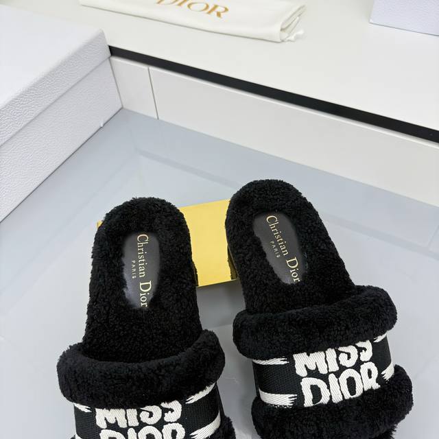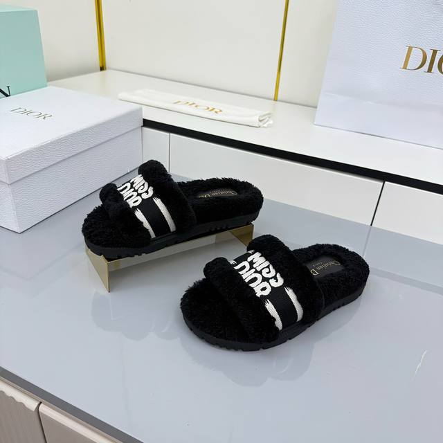 Dior 迪奥 秋冬新款毛毛厚底拖鞋半拖 经典高级优雅温柔随心所欲 ~ 上脚超级无敌好看舒服 厚底显瘦增高更彰显气质...