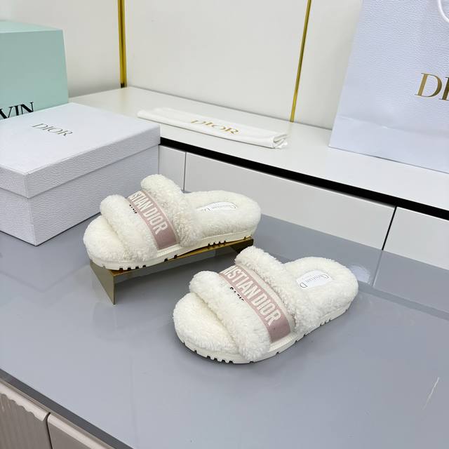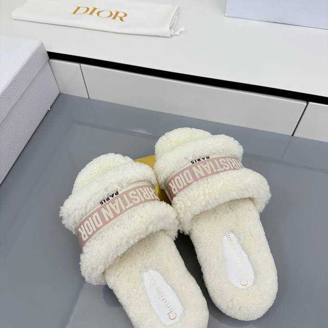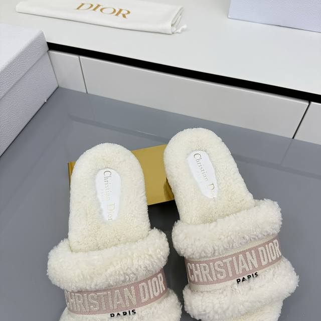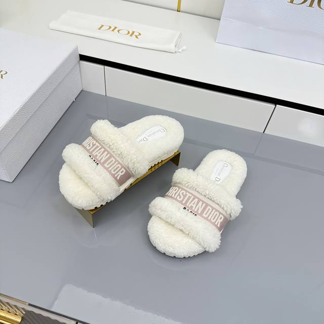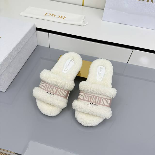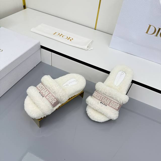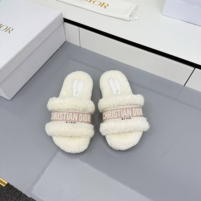 Dior毛拖全新升级版 迪奥秋冬刺绣羊毛拖鞋 软软糯糯的全真羊毛鞋面搭配刺绣,垫脚Logo采用头层打蜡牛皮,原版开模成型防滑大底,洋气百搭又舒服,俘获万千少女的心,秋冬必备单品。 Size: 35-39码 40 41 42定做码数不退不换
