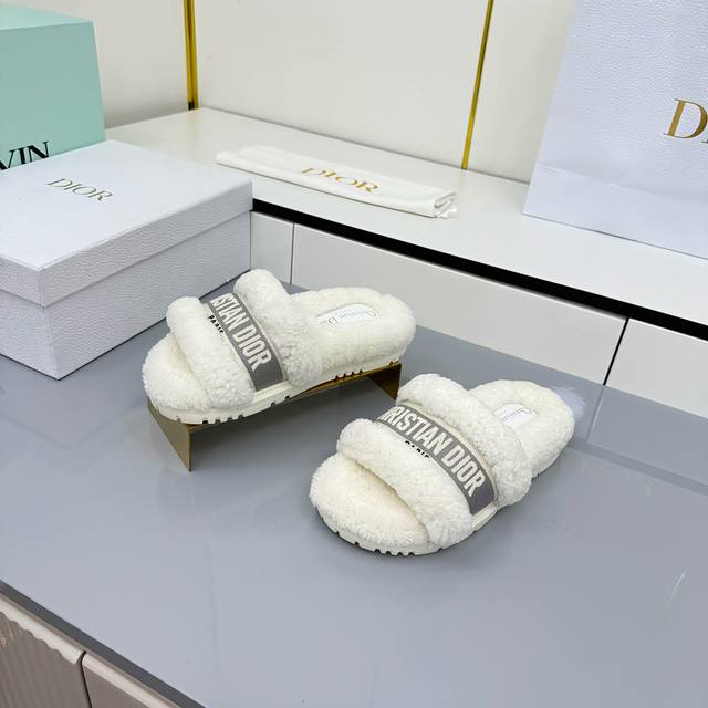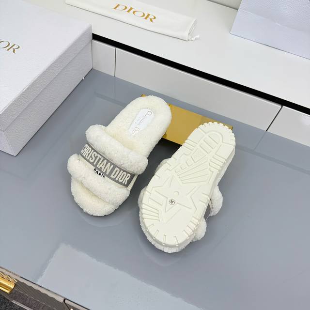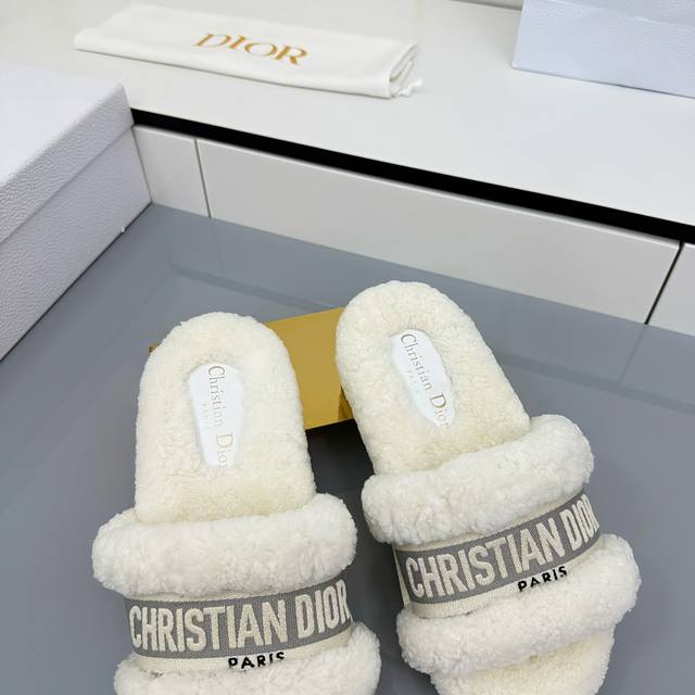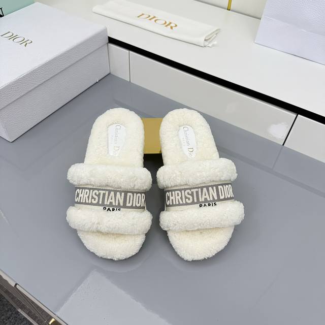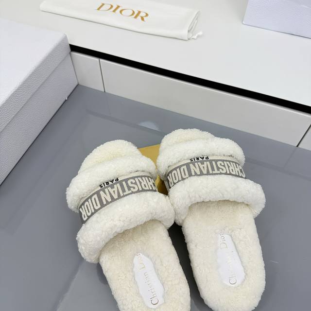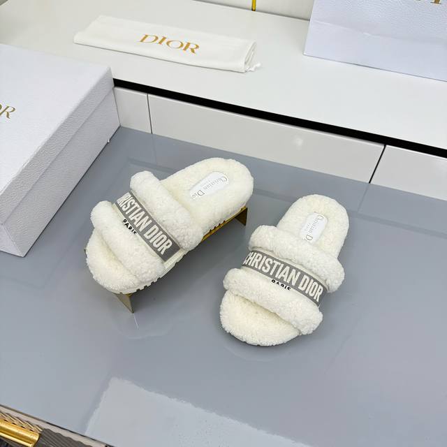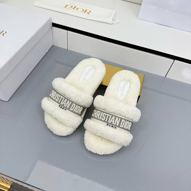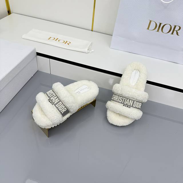 Dior毛拖全新升级版 迪奥秋冬刺绣羊毛拖鞋 软软糯糯的全真羊毛鞋面搭配刺绣,垫脚Logo采用头层打蜡牛皮,原版开模成型防滑大底,洋气百搭又舒服,俘获万千少女的心,秋冬必备单品。 Size: 35-39码 40 41 42定做码数不退不换
