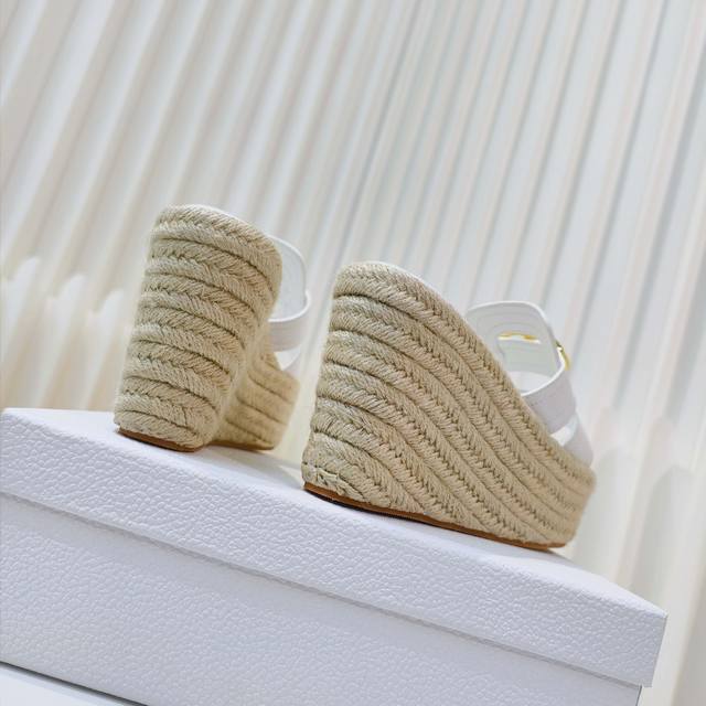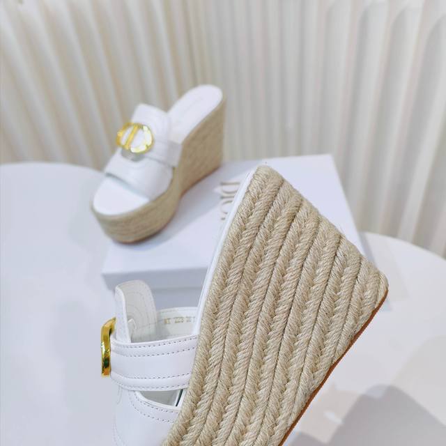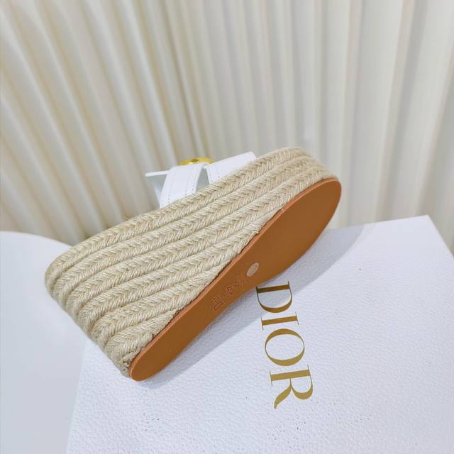 / Dior秋季凉鞋抢先上D-Club镂空Cd扣编织叠层坡跟草编高跟拖鞋 这款拖鞋鞋面以及垫脚采用全皮手工制作,鞋面配以品牌经典Cd金属扣,简单舒适,适合各种脚型。