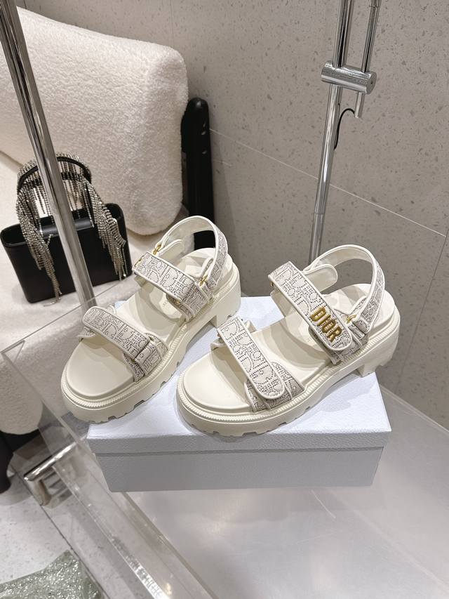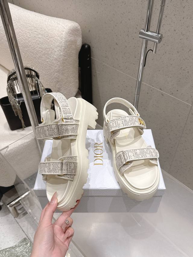 Dior迪奥春夏最新款魔术贴凉鞋、超多明星网红种草、经典的版型设计上迪奥Logo五金点缀、超好看超百搭、上脚非常柔软鞋面进口电绣,内里羊皮里、正品开模Tpu大底
