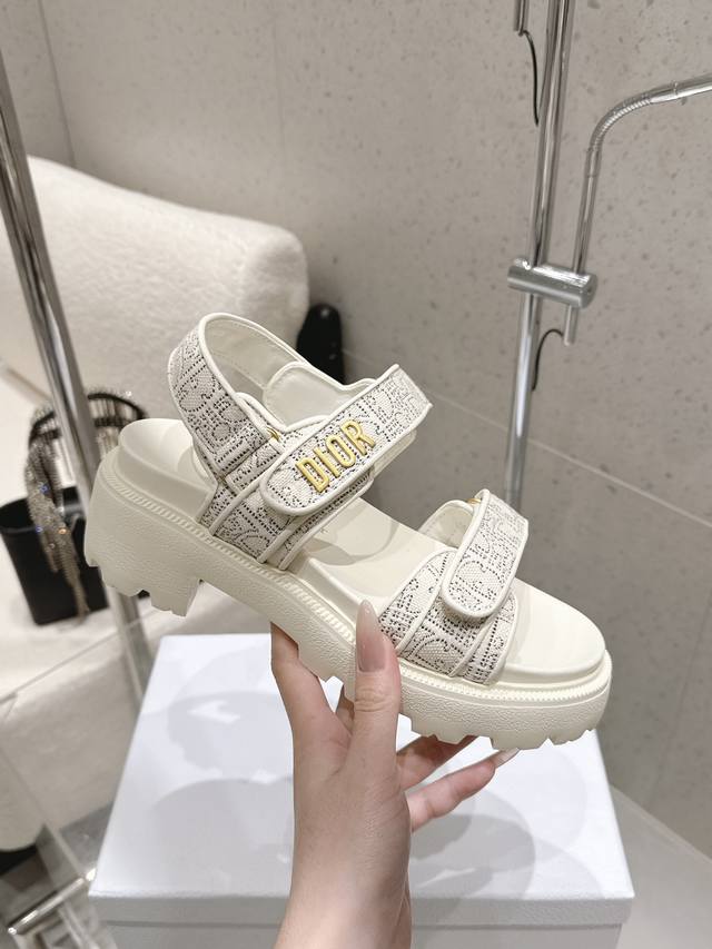 FFF Dior迪奥春夏最新款魔术贴凉鞋、超多明星网红种草、经典的版型设计上迪奥Logo五金点缀、超好看超百搭、上脚非常柔软鞋面进口电绣,内里羊皮里、正品开模Tpu大底高度4Cm 妥妥的增高神器 Size:35-39 40 41定做不退换 DDD