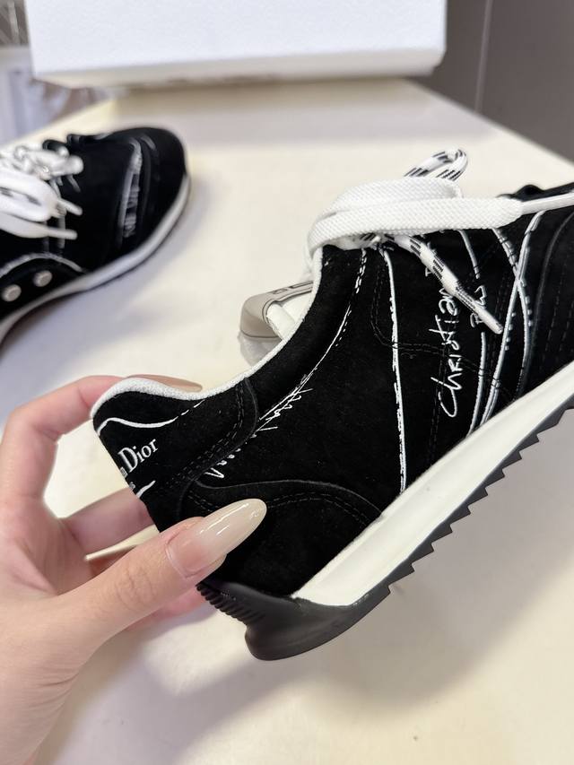Dior迪奥最新走秀款涂鸦素描德训鞋 阿甘鞋 运动鞋 DDD 太古汇Rmb11610购入开发 这双鞋改变了之前印象中的阿甘鞋单一的设计风格 保留着原本的造型 细节点缀上非常符合当下流行趋势但也融入了主理人对于阿甘鞋全新的理解和复古情怀。整体感觉焕然一新材质是有一点哑光的皮质,复古风十足 看起来很高级 上脚后的感觉就是很凸造型 上脚真心好看又百搭 啥风格衣服裤子裙子都能驾驭 谁穿谁好看 鞋面复古风磨砂牛皮 原版组合大底Size:35-41 40 41定制 DDD