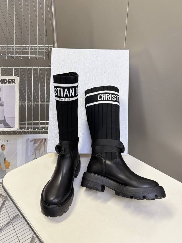 Dior迪奥秋冬最新款骑士靴 长靴 超多明星网红种草 时尚与潮流同时拥有 简约的设计 细节充满品牌元素 脚感超级舒适 可酷可帅的一款靴子不仅颜值爆棚有品牌辨识度 刺绣的立体感也是超A哒 飞织面料+进口头层牛皮+丝绸羊皮里,橡胶防滑耐磨底 原版全套包装 码数:35-41