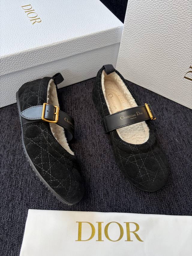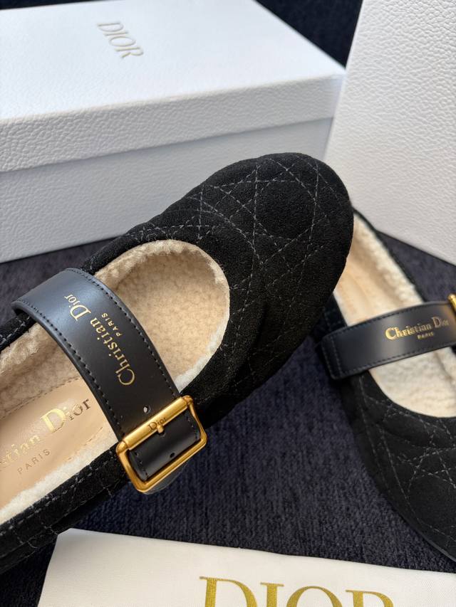 Dior迪奥秋冬最新款 毛毛鞋玛丽珍 芭蕾舞鞋 超多明星网红种草 芭蕾鞋经典的迪奥藤格纹元素 罗纹带子上加了Cd细节的五金扣设计精致小女人必备款 上脚极致舒适感