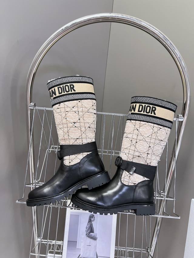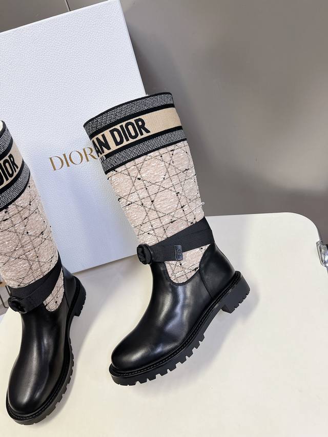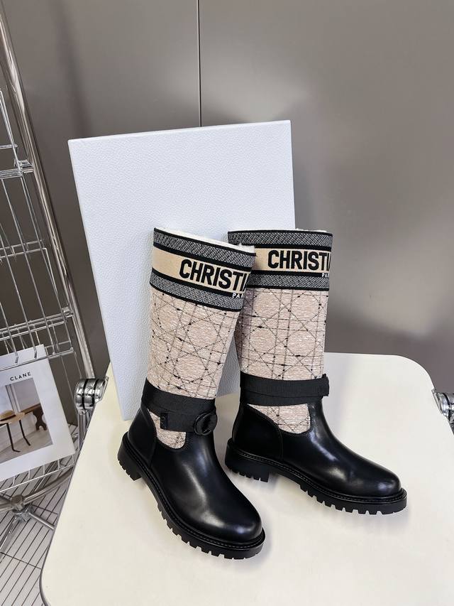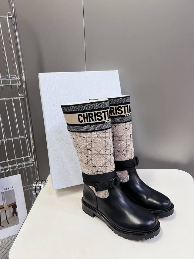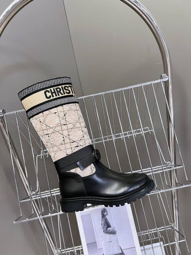 顶级版本 升级版全套包装 Dior24 刺绣中筒靴 高密度进口机器梭织!电绣工艺,并非市面飞织...