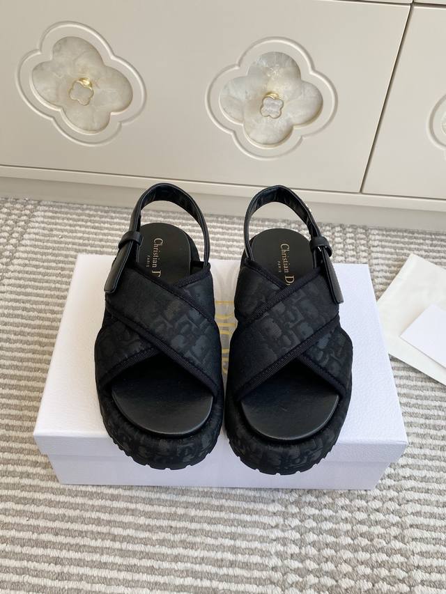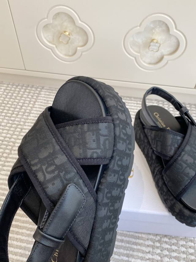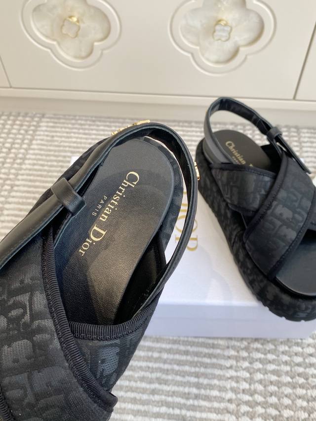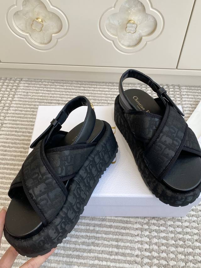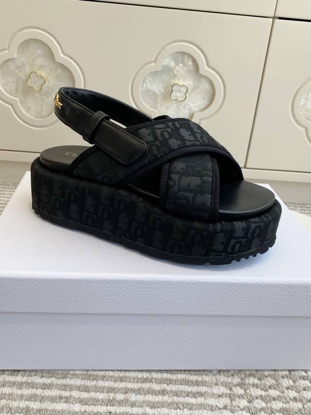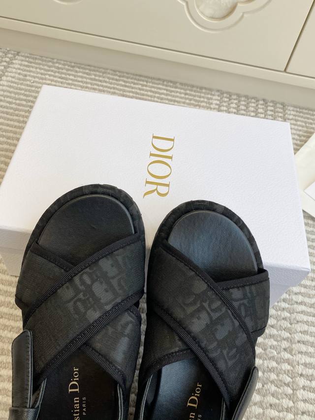 / Dior迪奥 26New Arrival厚底D字交叉带凉鞋 DDD D家厚底拖鞋,简约大气,鞋面定制老花面-搭配金色 Christiandior 标志,品牌感满