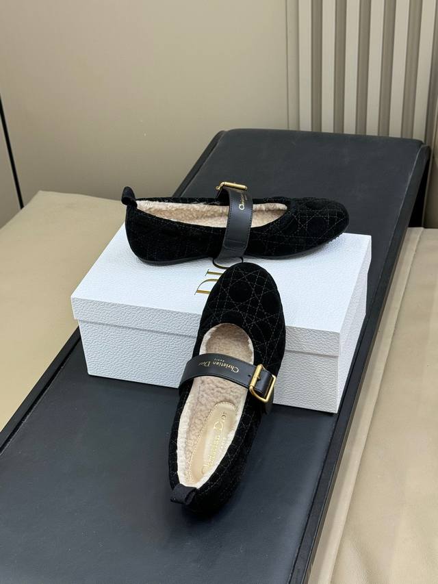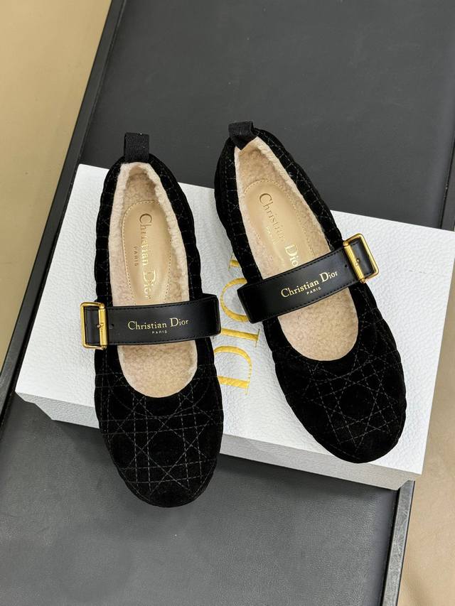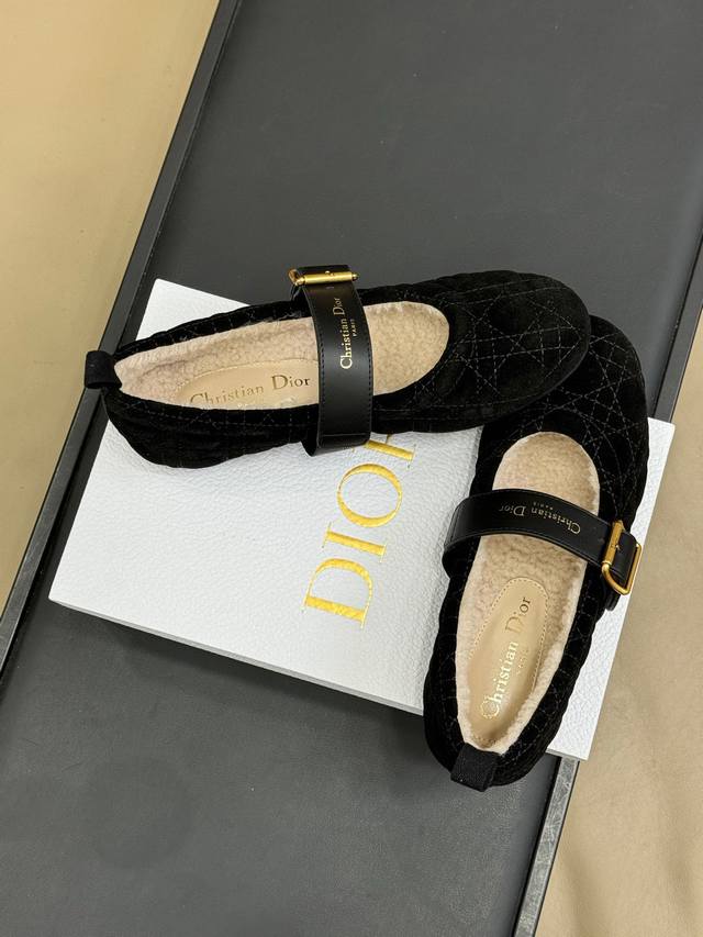 / Dior迪奥2025年冬季新款,菱格羊毛玛丽珍保暖娃娃鞋,菱格纹设计搭配金属扣带,尽显品牌经典格调。毛绒内里为秋冬带来温暖,姜黄与黑色两款皆具优雅气质,轻松打造