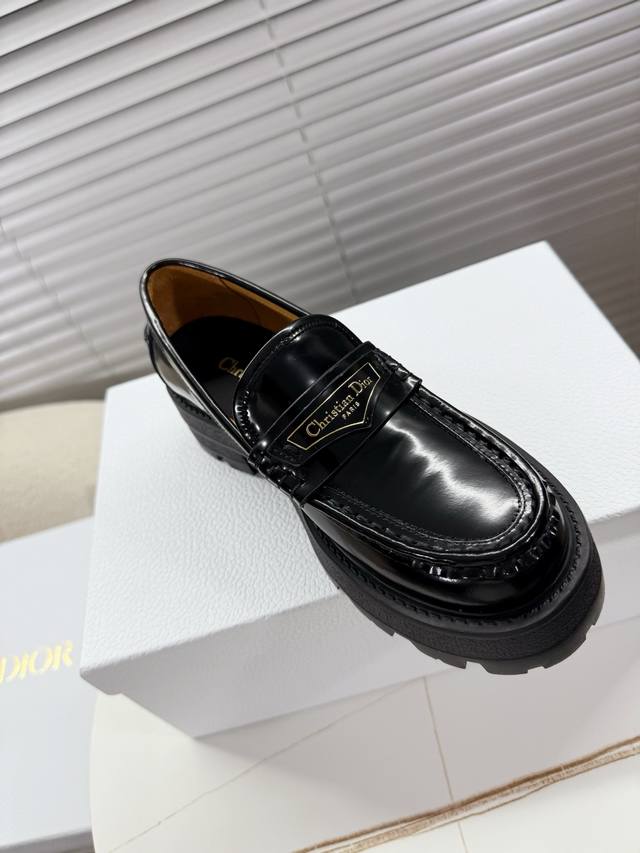 Dior 乐福鞋~~ DDD 这双松糕厚底乐福鞋绝对是腿精必备神器 DDD 显高显瘦,黑色经典百搭王~~ DDD 高光面皮搭配标志性的品牌金属徽标,加上5.5Cm厚底设计轻松拥有大长腿! DDD 鞋面原版开边珠牛皮+羊皮拼接+5.5Cm厚底 DDD 35 41正码 DDD