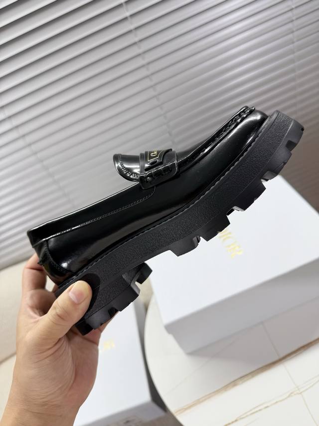 Dior 乐福鞋~~ 这双松糕厚底乐福鞋绝对是腿精必备神器 显高显瘦,黑色经典百搭王~~ 高光面皮搭配标志性的品牌金属徽标,加上5.5Cm厚底设计轻松拥有大长腿