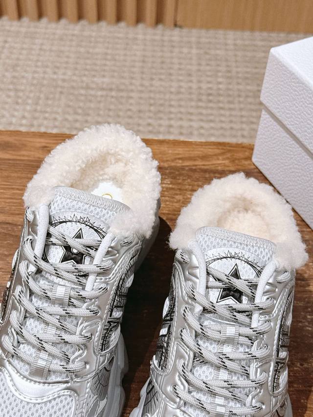 Dior 迪奥新款毛绒老爹鞋 DDD 鞋型为老爹鞋轮廓,结合透气网眼布与厚底橡胶大底,鞋口处填充羊毛内里,兼具潮流感与冬季保暖性。 DDD 鞋身线条硬朗,多色可选,满足简约或个性的搭配需求。融合“街头老爹鞋的潮流感”与“毛绒内里的温暖属性”,适合秋冬季节,既适配休闲场景,又能通过厚底设计优化身材比例。 DDD 鞋面:牛皮 DDD 内里:羊毛 DDD 大底:原版开模大底 DDD 增高:6Cm DDD Size: 男码咨询主色可接单 DDD 女码35-41码 40-41定制不退换 DDD 男码39-45码 4