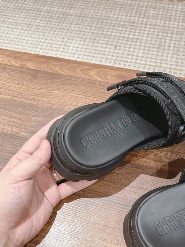 新色 出 Dior 迪奥 25春夏新款 Ivieta Dway 松糕厚座一字拖Cd字母Logo立体刺绣厚底圆头露趾拖鞋...