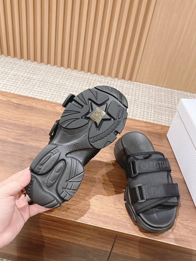 Dior 迪奥春夏新品厚底沙滩拖 设计理念凉鞋加运动鞋元素搭配组合 款式非常时髦洋气百搭增高 鞋面两条魔术贴可调节松紧! 特定科技面料# 独家开模Tpu+Pu发