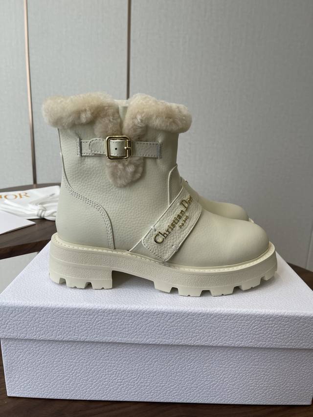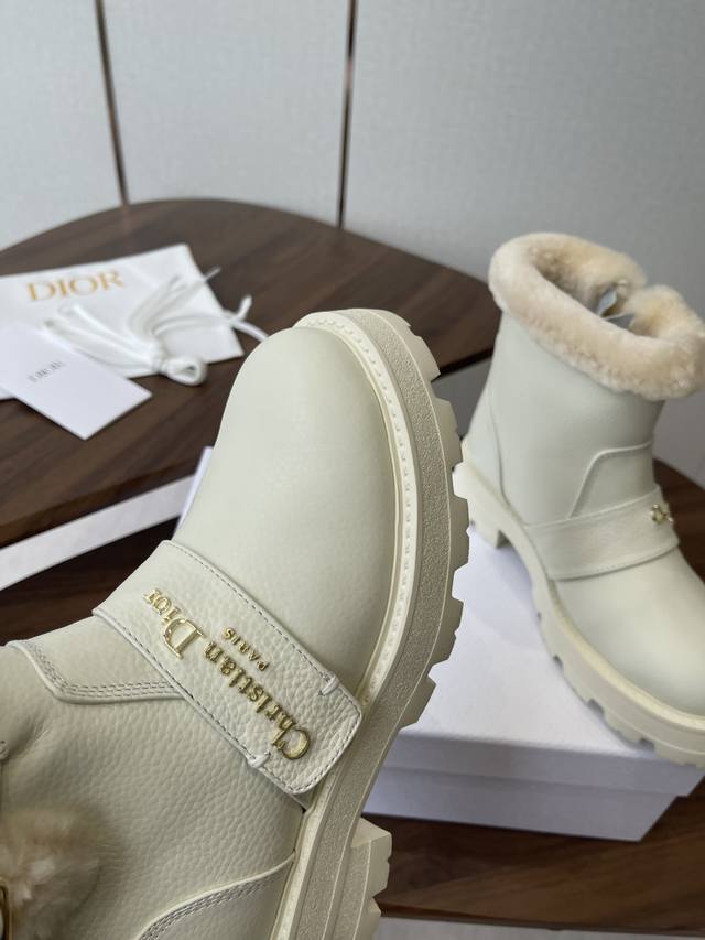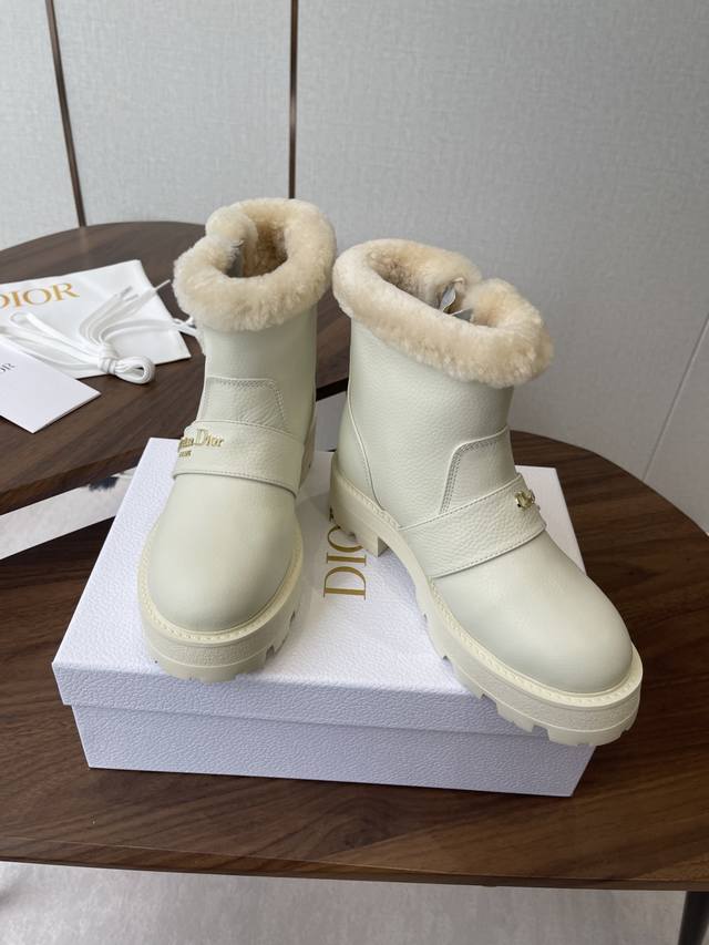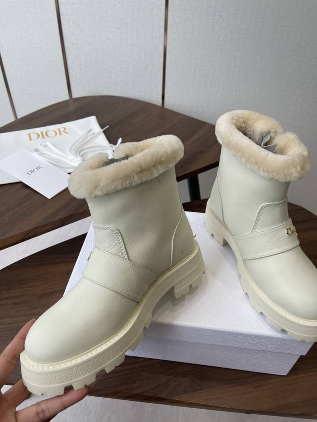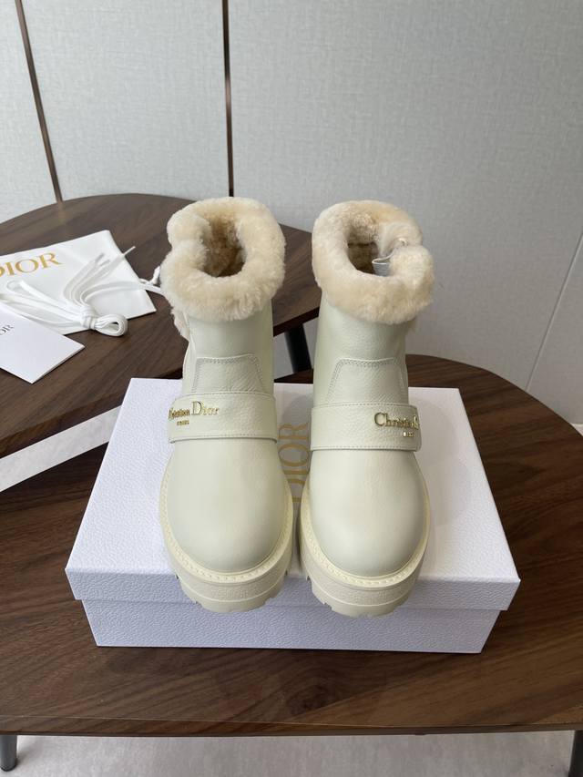 下单备注皮里 羊毛里 Dio* 25Ss 迪奥 25新款3D刺绣厚底羊毛短靴 雪地靴...