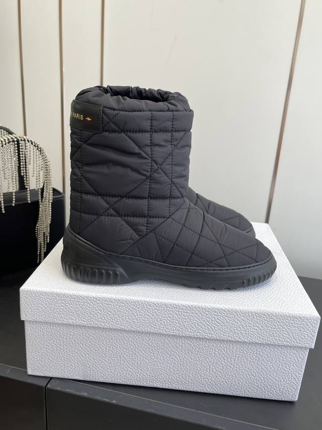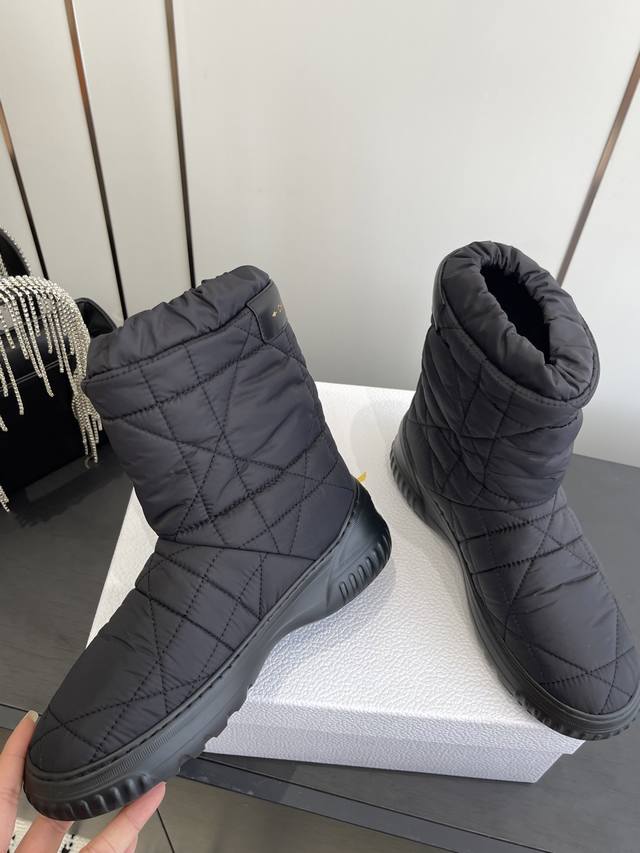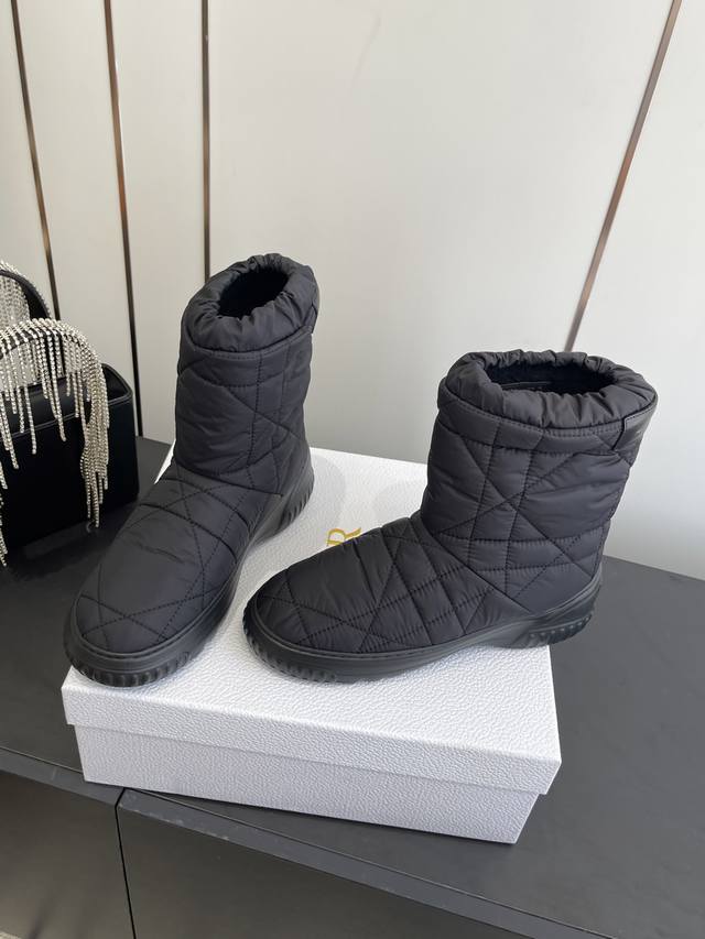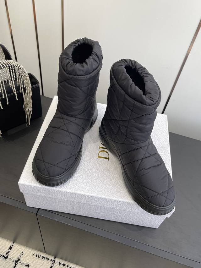/ Dior 迪奥 秋冬新款雪地靴 半拖 这款Dior 及踝靴巧妙融合 Dior Chez Moi 系列元素 采用 Oblique 印花天鹅绒制作,Christia