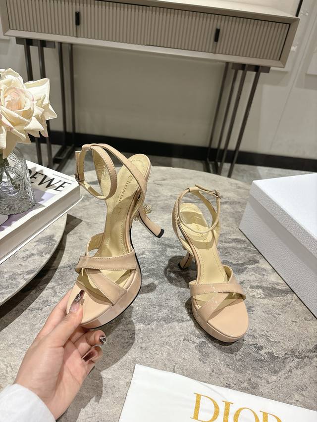 Dior 迪奥 2025春夏走秀新款Tribales高跟交叉带露趾女鞋 Cd明星同款水钻字母Logo五金扣防水台凉鞋