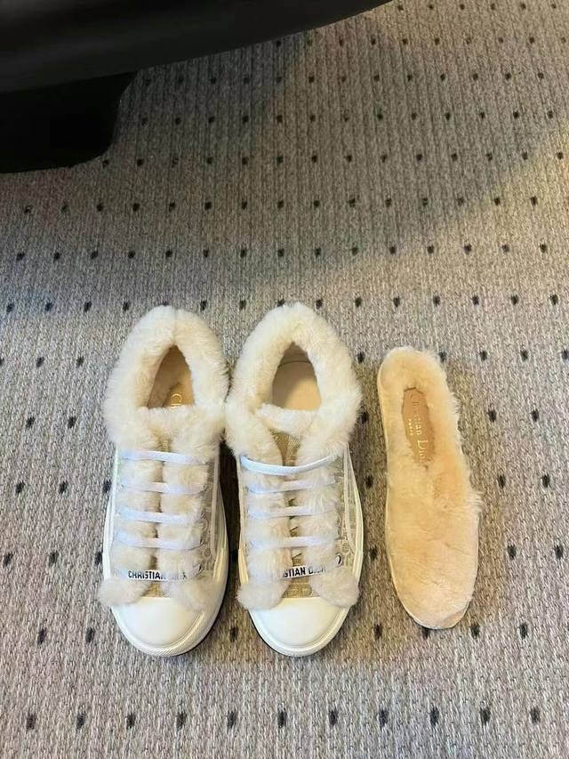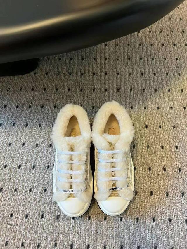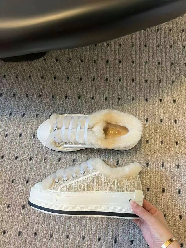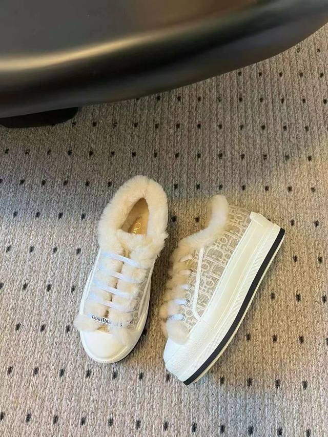 Dior 迪奥 2025秋冬新品 经典厚底刺绣运动鞋,内里皮毛一体,兼具好看与保暖功能,Nice得很哦 增高效果也很棒 原版组合厚底 35-41码