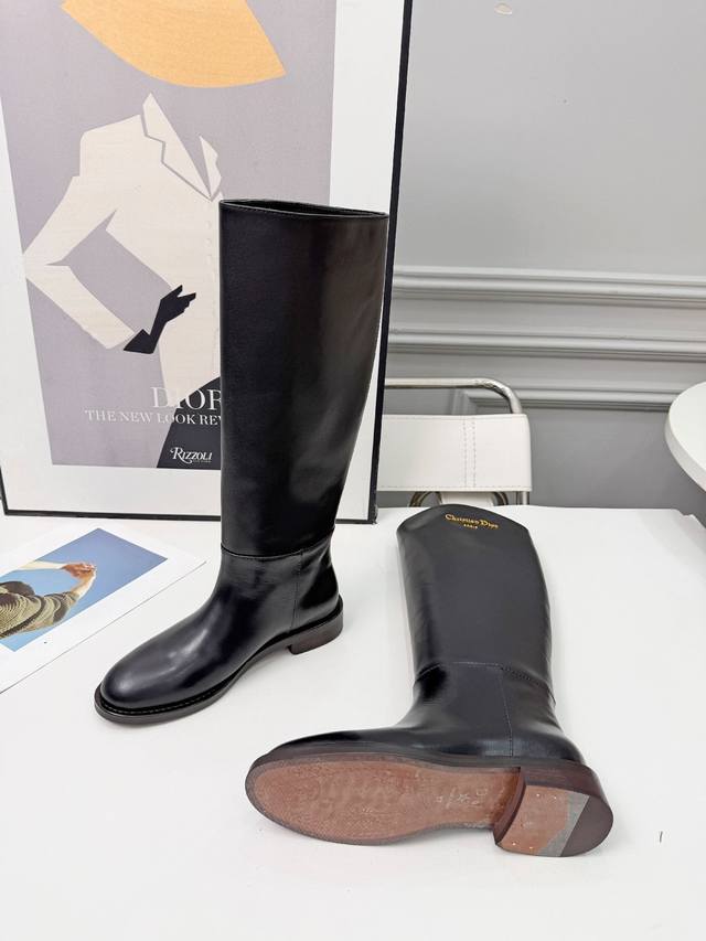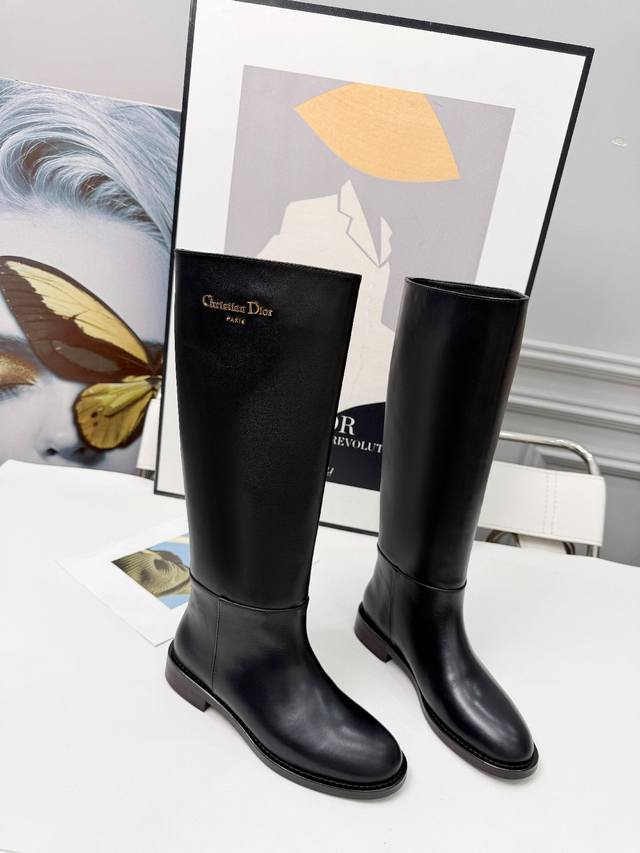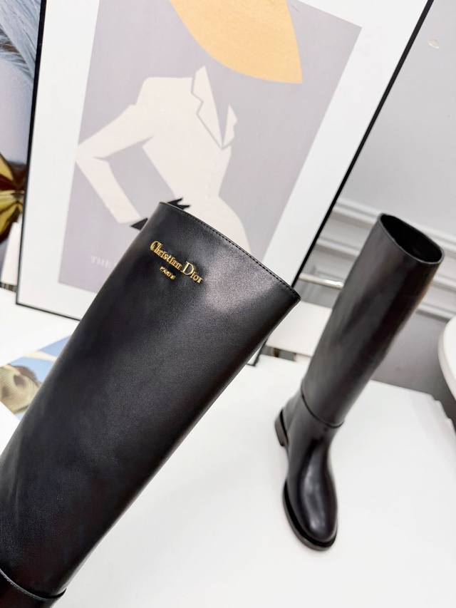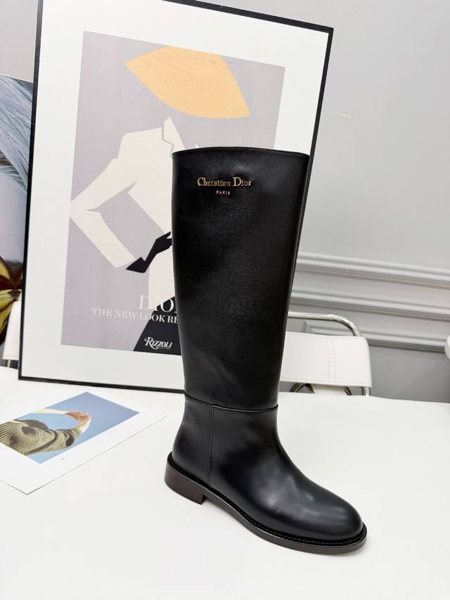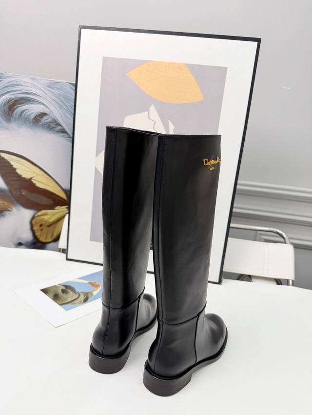 Dior 迪奥 25 新款平底Logo金色字母长靴,头层牛皮,羊皮里,35-41 出厂