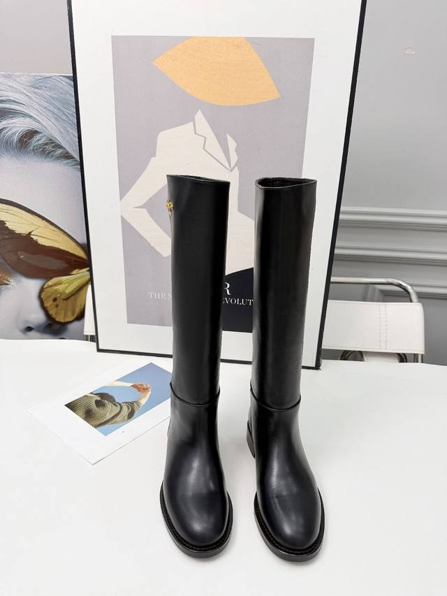 Dior 迪奥 25 新款平底Logo金色字母长靴,头层牛皮,羊皮里,35-41 出厂 DDD