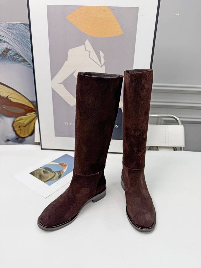 Dior 迪奥 25 新款绒面平底Logo金色字母长靴,羊皮里,35-41 出厂