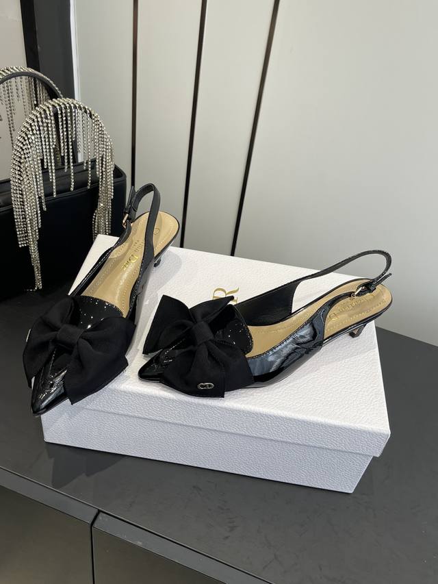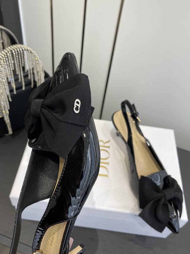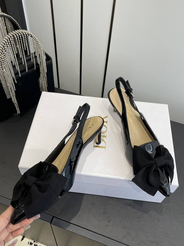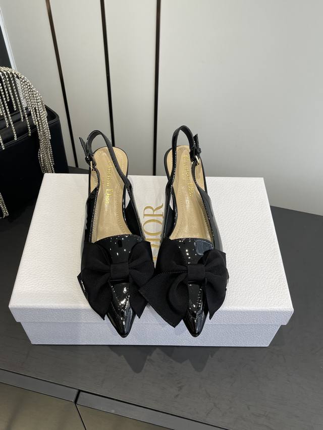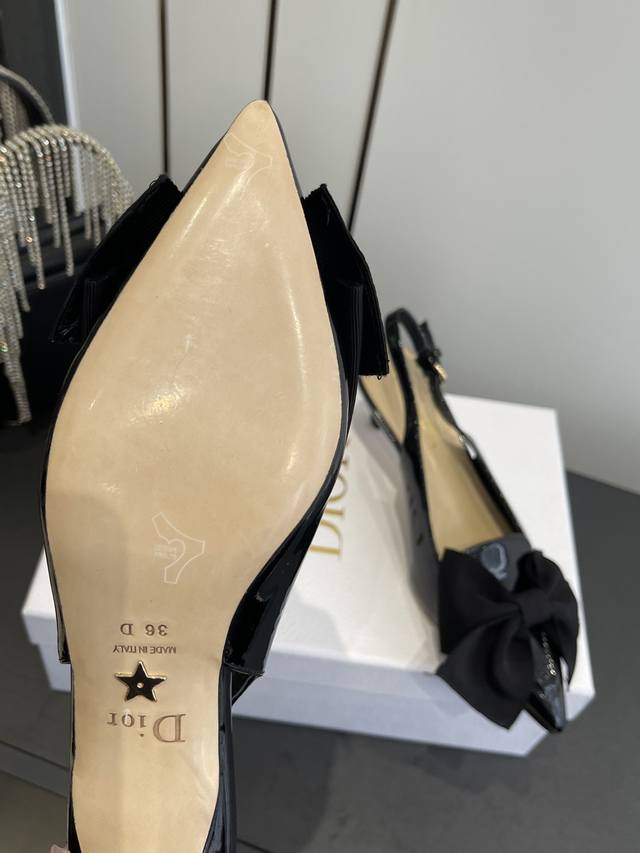 Dior 迪奥 25Ss新品 蝴蝶结 尖头高跟鞋 DDD 这款 My Dior 露跟高跟鞋 精致优雅 采用漆皮牛皮革精心制作 尖头设计 富有辨识度 彰显 Dior 非凡的精湛工艺 搭配蝴蝶系带和图形风格鞋跟 令时尚的设计更显典雅 DDD 鞋面漆皮 DDD 内里羊皮内里 DDD 进口真皮大底 DDD 码数:35-40 40.41定做 DDD