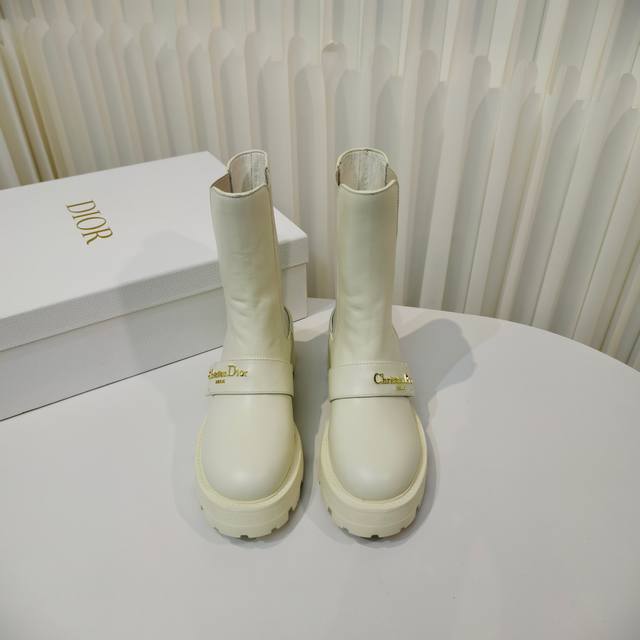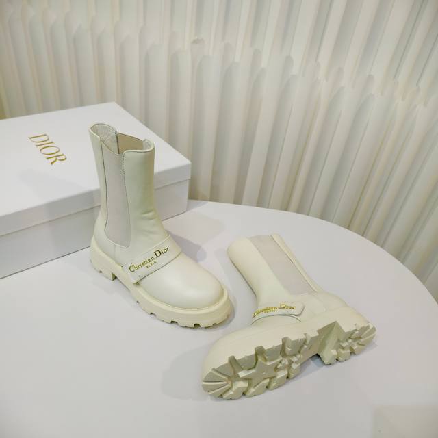 / Dior 迪奥2025 Cruise 新款中筒切尔西靴厚底马丁靴 最新五金皮带扣装饰 彰显高端品牌魅力,经久不衰的马靴造型,采用柔软的牛皮革制作,打造休闲又不失
