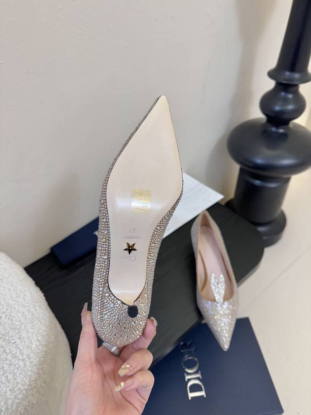 Dior 迪奥26春夏璀璨星河系列!水晶烫钻尖头高跟单鞋婚鞋! 走秀新款Bling...Bling...水晶烫钻饰以点缀!小耳朵可爱俏皮减龄又不失高级感~富家千