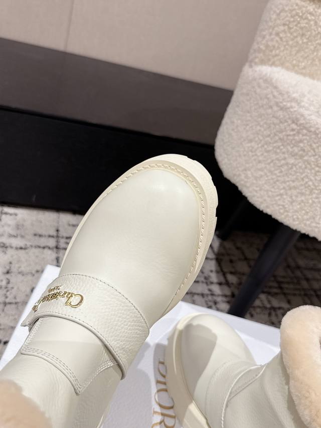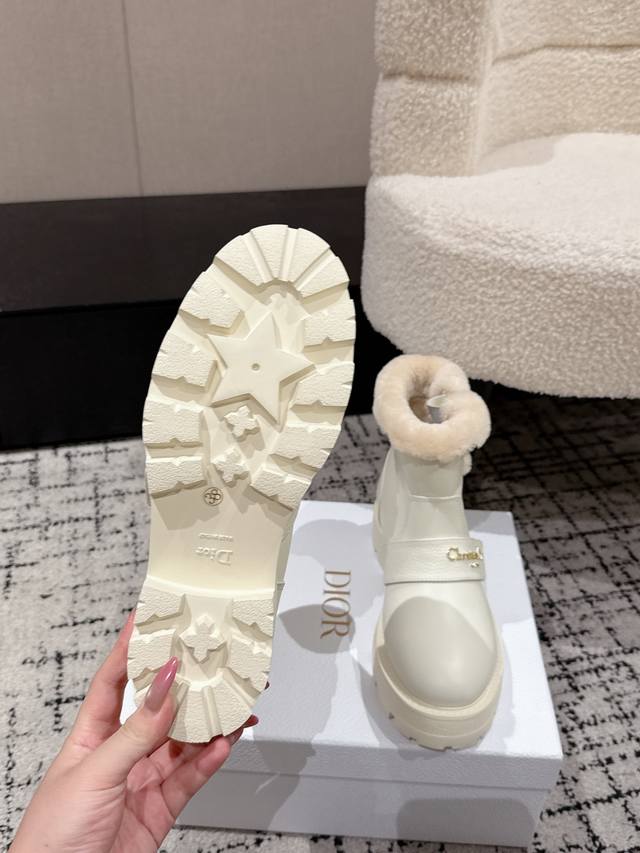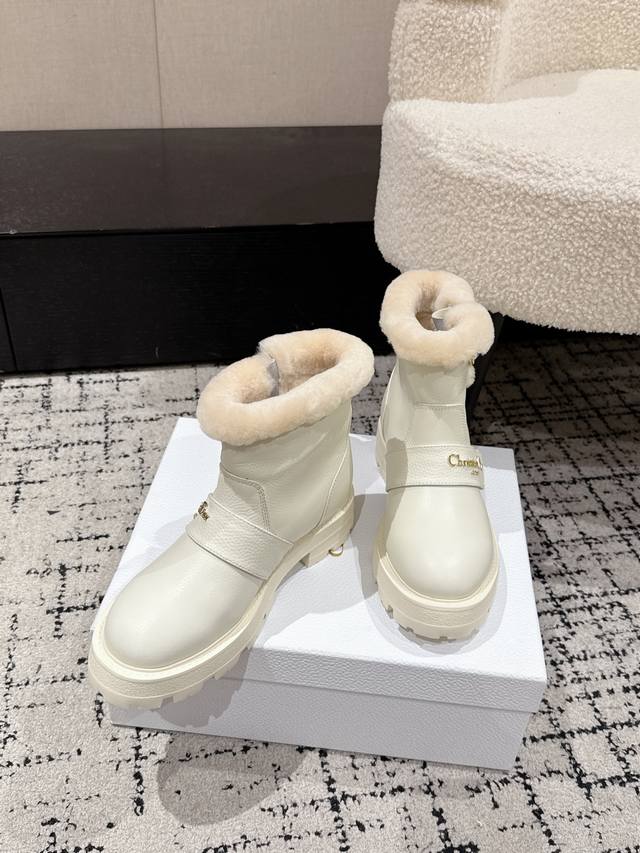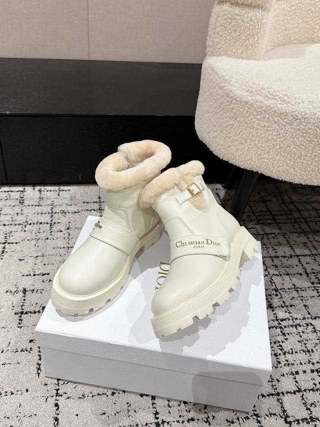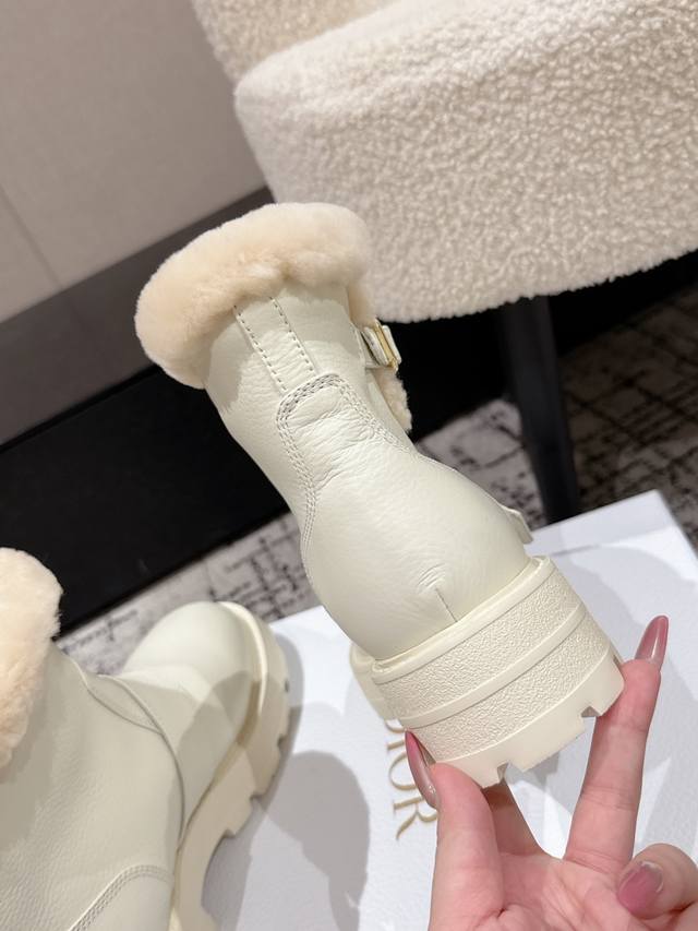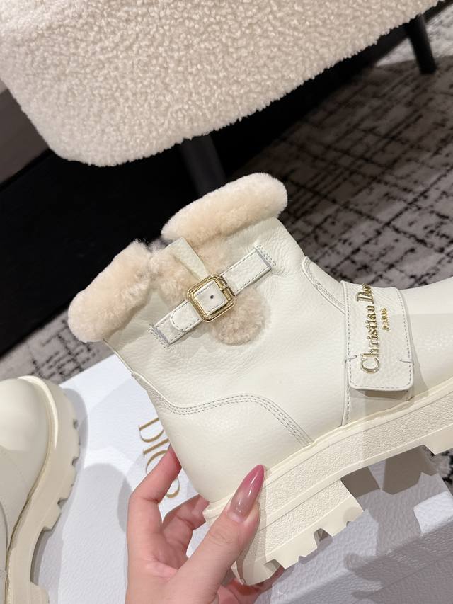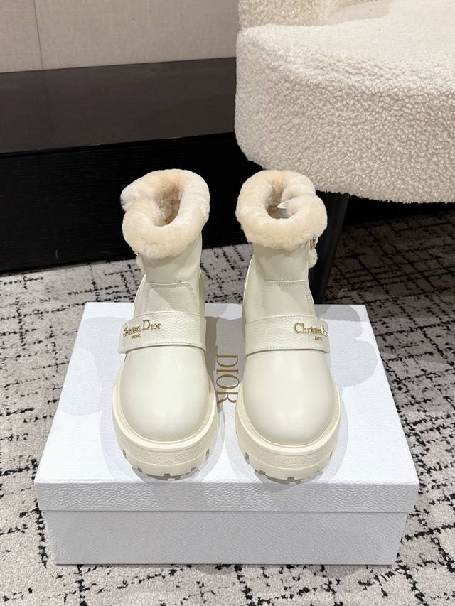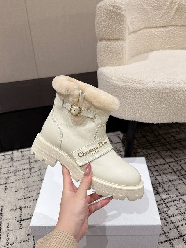 / Dior 迪奥D家F037 25 秋冬新品羊毛里平底短靴 经久不衰的马丁靴造型,彰显经典设计,采用柔软牛皮制作,打造休闲又不失优雅的风格。侧面带有Dior金色五