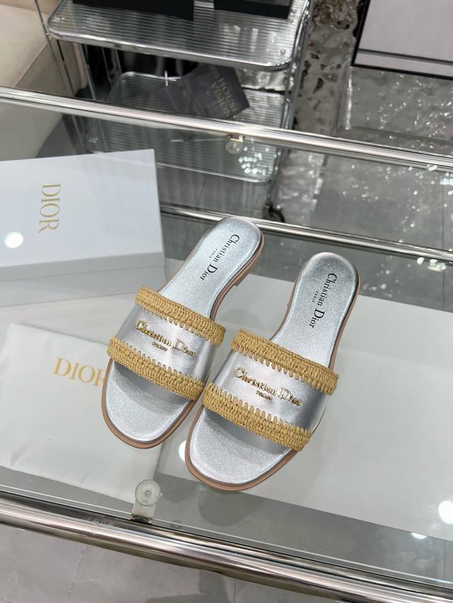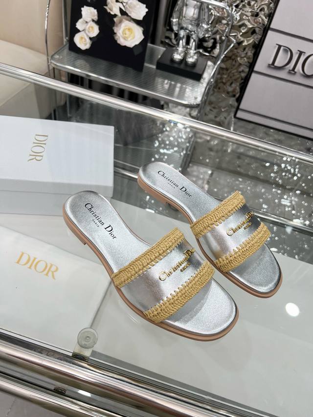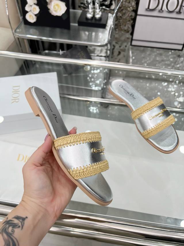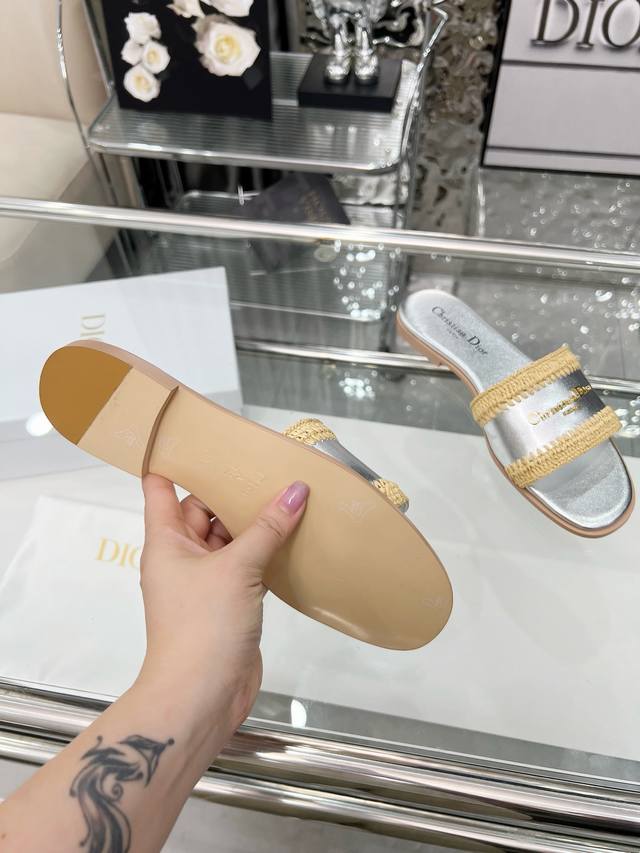 Dior 2025夏季新品,开启度假般的时髦之旅,城市限定款,拉菲草纯手工编织,35-43。 35定做不退换 像胶底 。真皮底 DDD