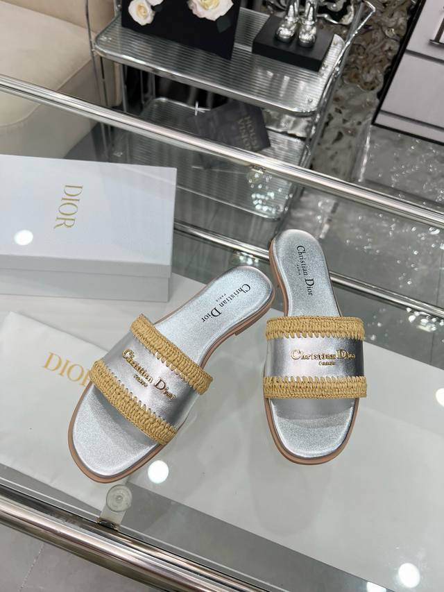 Dior 2025夏季新品,开启度假般的时髦之旅,城市限定款,拉菲草纯手工编织,35-43。 35定做不退换 像胶底 。真皮底