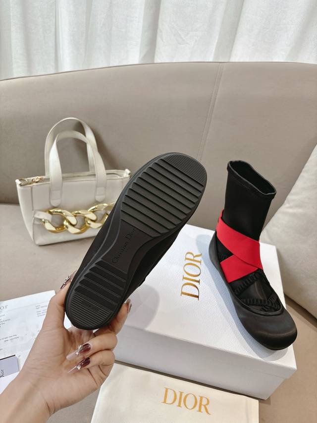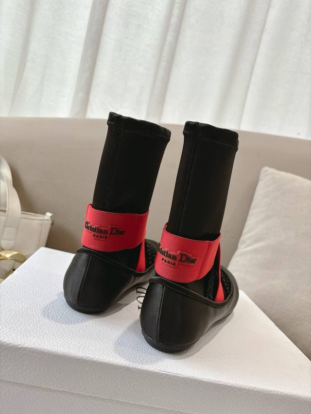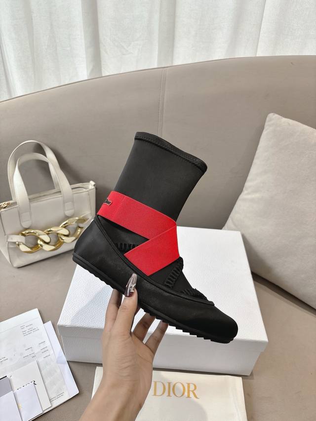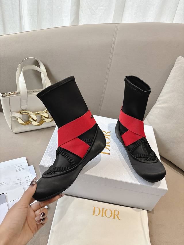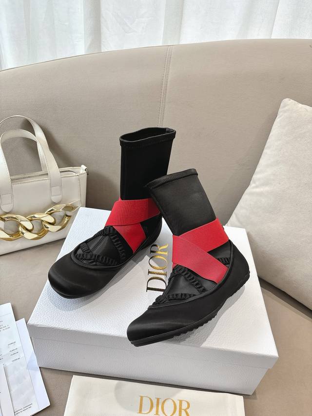 Dior 2025Fall早秋系列鞋履芭蕾舞弹力靴 这谁不心动 DDD 太美了吧! Dior简直就是掌管美学的神 DDD 特别是黑红配色 DDD 轻奢混种羊皮面料超有质感和高级感! DDD 鞋面;进口混种羊、意大利真丝 DDD 内里:羊皮 DDD 鞋底:T U DDD 码数:35-39 40、41不退换 DDD