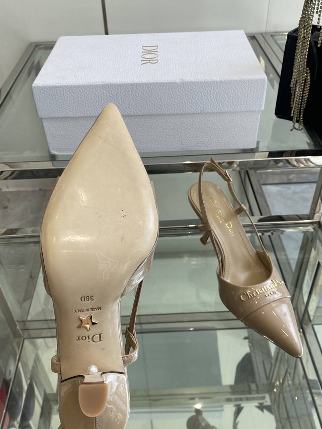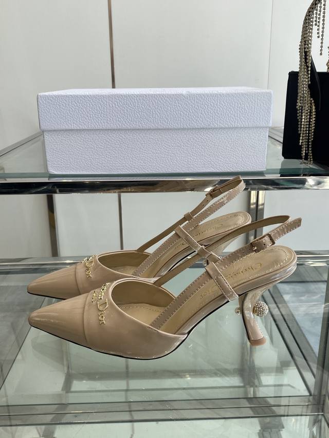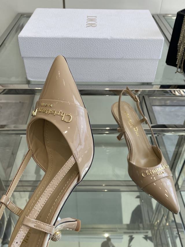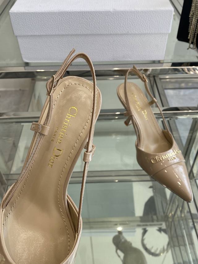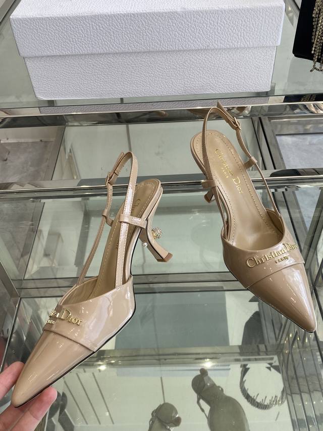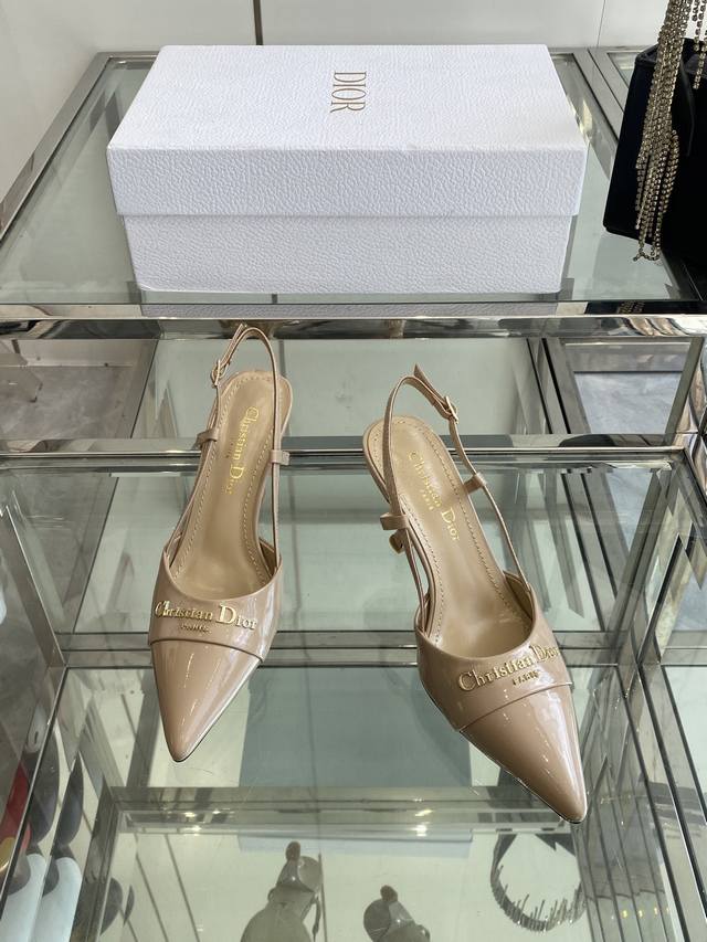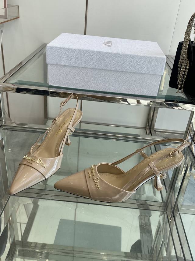 Dior 25Ss 春夏新款Dior尖头高跟 后空凉鞋 这款 My Dior 露跟高跟鞋是2025春夏成衣系列新品 精致优雅 采用牛皮革精心制作 尖头设计 点缀以金色饰面金属 Christian Dior Paris 标志 富有辨识度 彰显 Dior 非凡的精湛工艺 搭配可调节系带和图形风格鞋跟 令时尚的设计更显典雅 鞋面牛皮 漆皮 内里混种羊皮 意大利原版真皮底 跟高5Cm 码数:35-39 40.41.42 定做