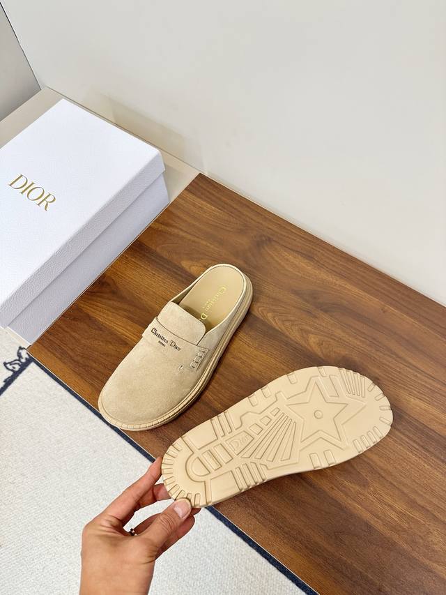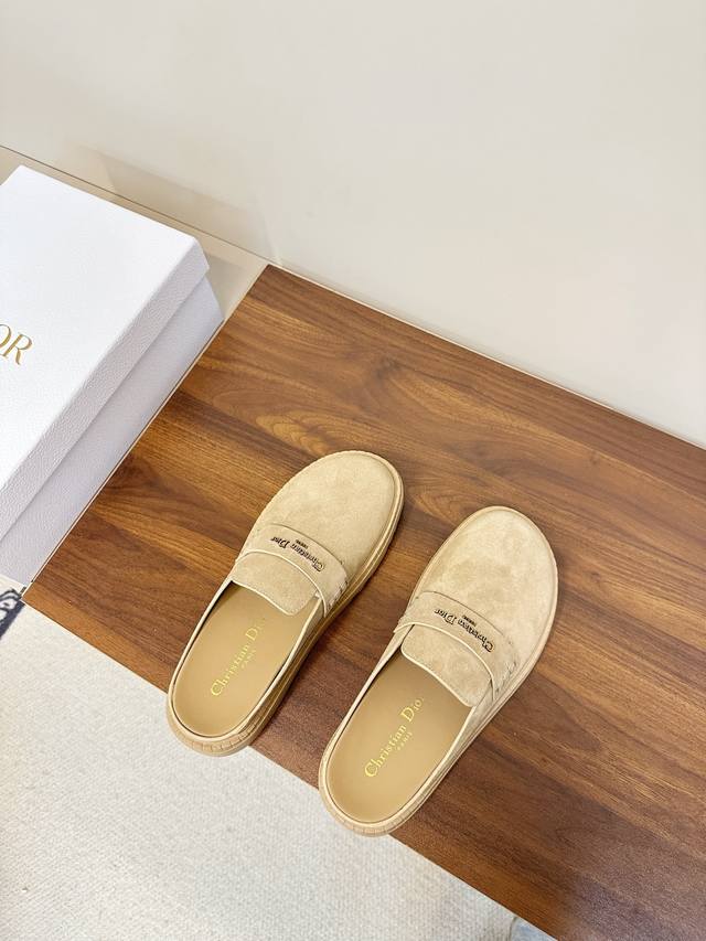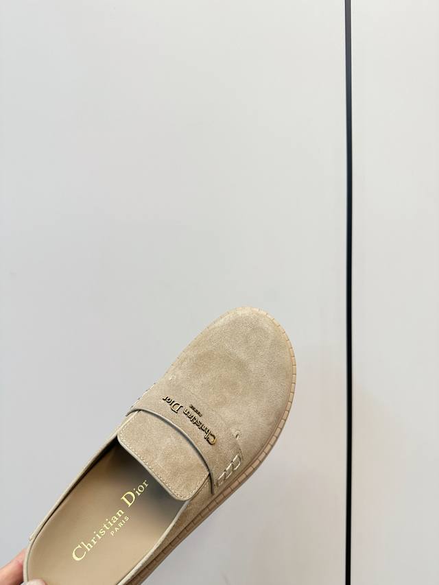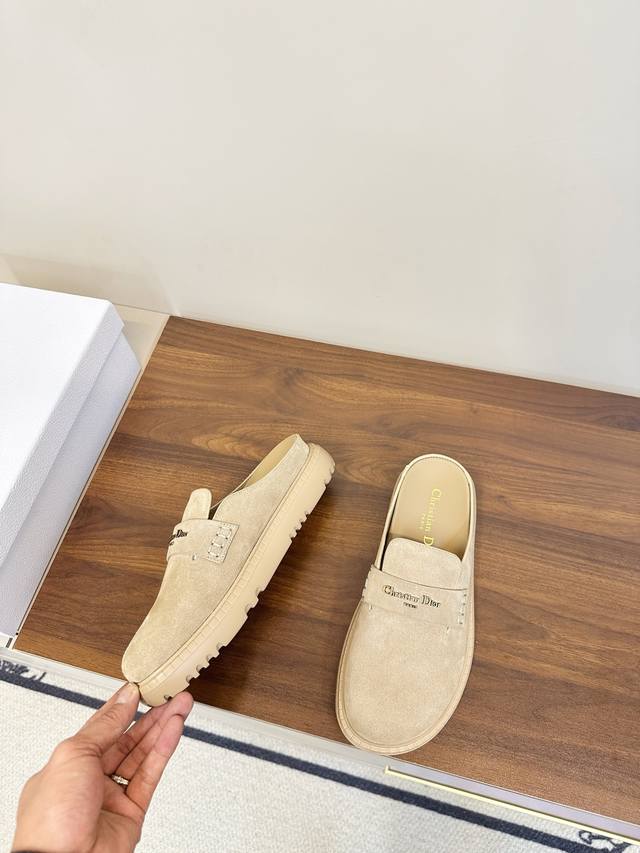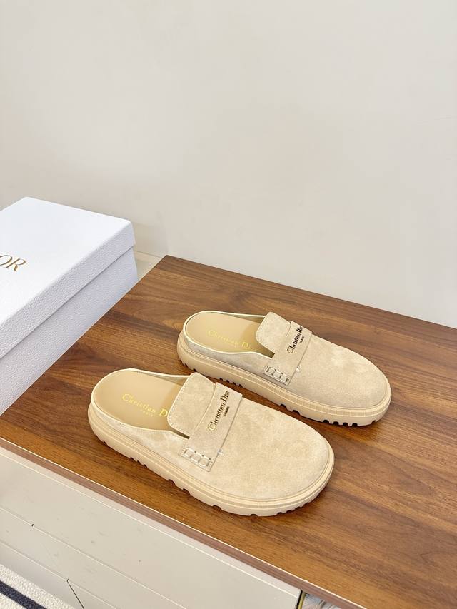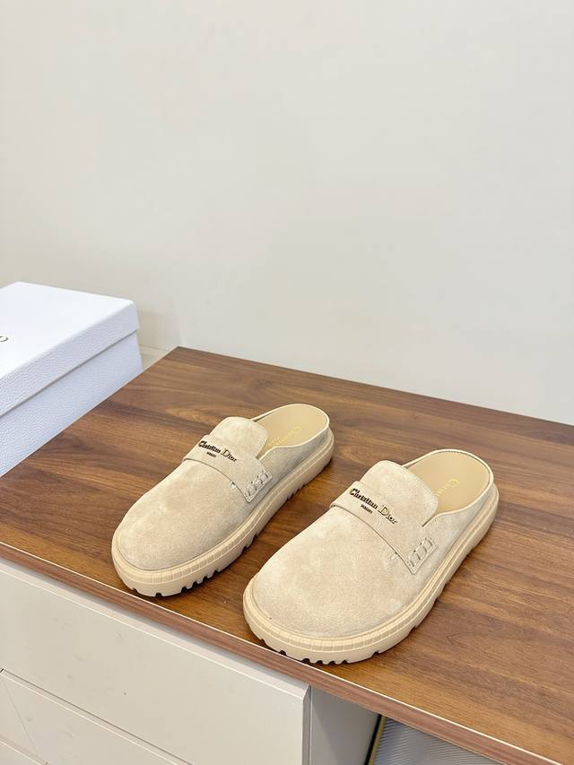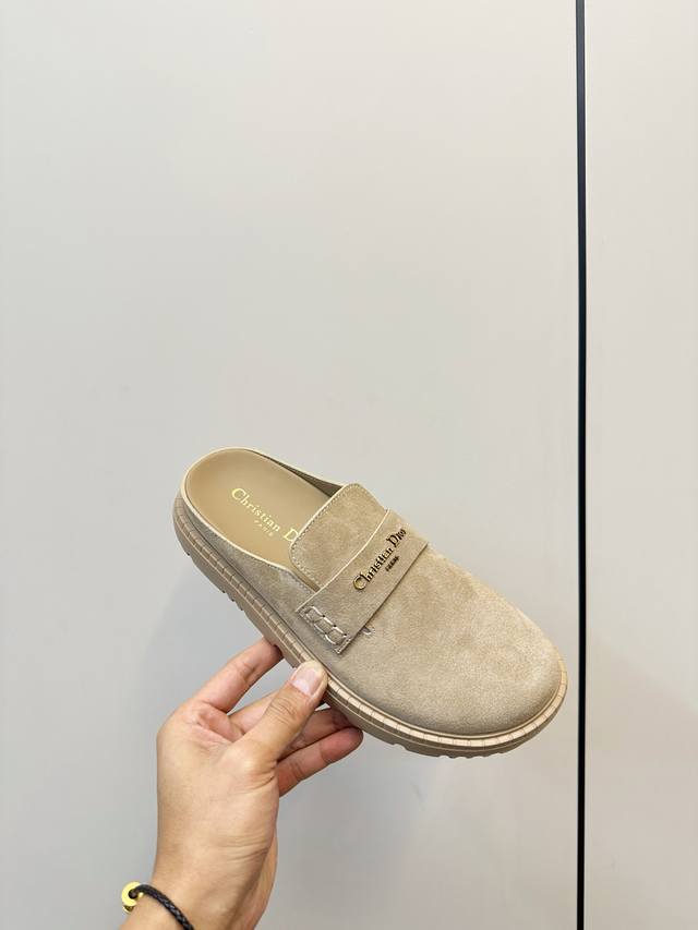 Dior Cruise26早春新款 麂皮穆勒拖鞋 DDD 迪丽热巴巴黎时装周 同款 Ddd Dior 2026早春系列麂皮穆勒拖鞋,柔软麂皮材质,卡其色低调百搭,鞋面金属“Christian Dior”标志超有辦识度。厚底设计,穿着舒适又时髦,日常通勤或休闲都能轻松驾驭。 Ddd 。无后跟设计,穿脱方便,简约优雅风格,秋冬搭配裤装或裙装都很出彩。高端时尚单品,品质与设计感兼具! Ddd 鞋面鹿皮材质 Ddd 内里羊皮! Ddd 厚底4Cm Ddd 码数:35-40 40.41订做 DDD