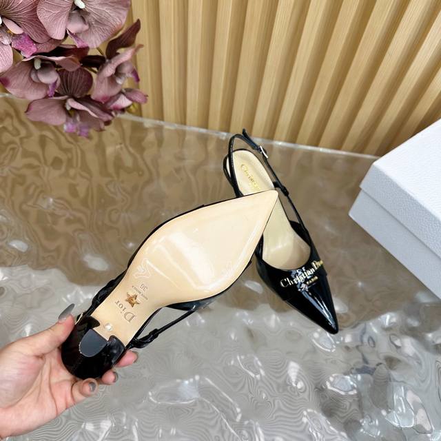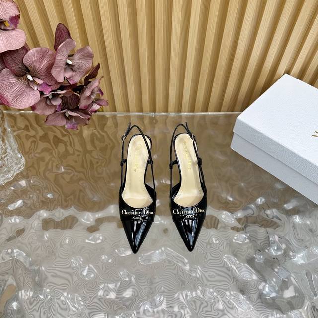 Dior2025 春夏新品珍珠后跟交叉带凉拖鞋 这款完全长在女生喜欢的点上 后带高跟鞋 DDD 延续D家永恒经典!这款鞋低调不失华丽 性感又不显张扬 鞋型是大家都爱的秀气款 非常非常显瘦 侧面整个弧度将脚部曲线完美展现 既有成熟女人味 又不乏一丝活泼少女感, 上脚也太好看了,值得推荐 DDD Go 材质: DDD 鞋面:进口漆皮 布面 DDD 内里:混种羊皮 DDD 大底:意大利进口牛皮大底 DDD 跟高: 8Cm DDD 码数:35 41 40 41 42 43定制不退换 DDD