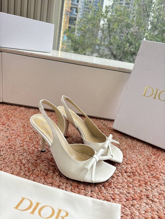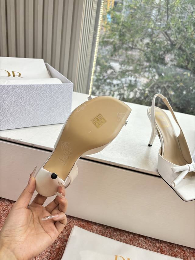 G030顶级品质Dior 迪奥26Wf早春新蝴蝶结高跟拖鞋凉鞋 标志性金属D字扣缀于鞋头侧畔哑光鎏金质感低调夺目是懂奢者才识的隐性徽记。柔韧鞋跟兼顾高挑感与舒适