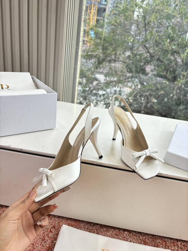G030顶级品质Dior 迪奥26Wf早春新蝴蝶结高跟拖鞋凉鞋 Ddd 标志性金属D字扣缀于鞋头侧畔哑光鎏金质感低调夺目是懂奢者才识的隐性徽记。柔韧鞋跟兼顾高挑感与舒适度晨起优雅配高腰阔腿裤是通勤气场一双解锁全场景法式精致。 Ddd 面料:真丝材质 牛皮 Ddd 内里:垫脚均为羊皮 Ddd 鞋底:意大利进口真皮大底 Ddd 跟高:8.5Cm Ddd Size:35-39 34.40 41 42定制 DDD