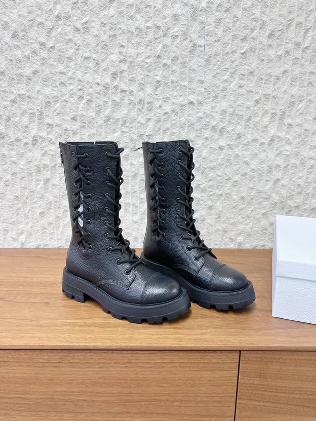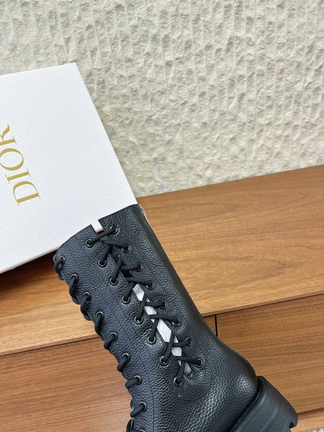 G637 Dior 迪奥 25Ss秋冬新款 系带马丁靴 短靴 DDD 彰显高订魅力 黑色橡胶效果牛皮革筒形设计 DDD 侧面饰以银色拉链饰面提升格调 DDD 搭配厚实而轻盈的凹口鞋底 DDD 可为本季休闲造型增光添彩 DDD 鞋面:采用原版进口小牛皮 DDD 内里垫脚:牛皮 DDD 跟高:4.5Cm DDD 鞋底:原版定制开Eva超轻橡胶大底 DDD 码数:35-39 40定做不退换 DDD