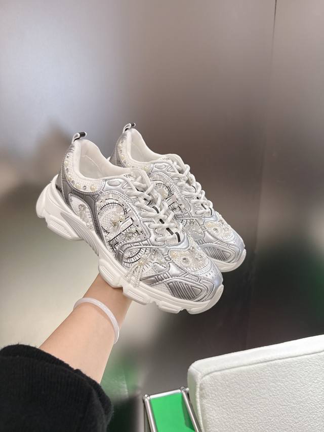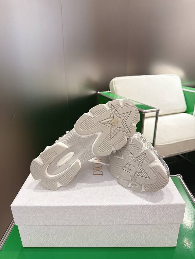 K020 Dior 迪奥Dior Vibe 运动鞋 DDD 这款 Dior Chrono 运动鞋以 Dior 的高订风格重新演绎跑步鞋。网眼织物搭配白色皮革效果镶片,两侧的 Cd 标志、鞋舌上的星星补丁和鞋跟的 Dior 标志,诸多经典细节彰显格调。采用双色鞋带,轻盈鞋底搭配星星装饰,可全年打造休闲造型 DDD 码数:35-41 DDD