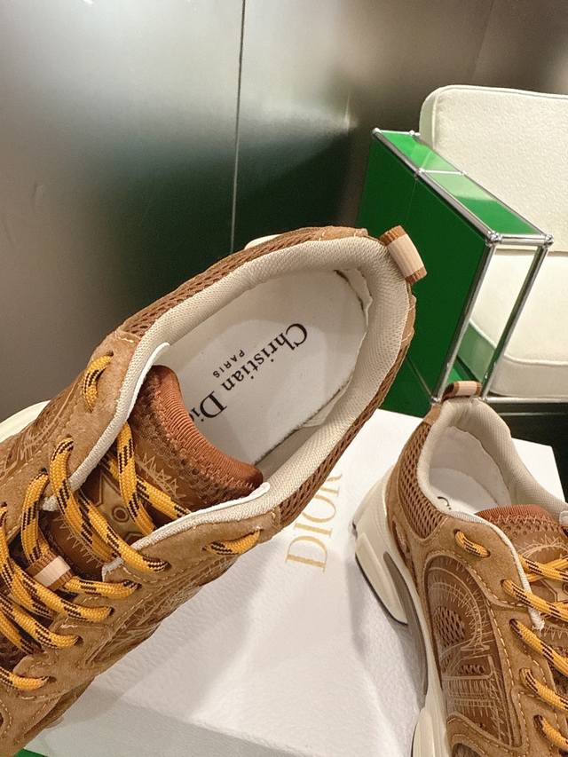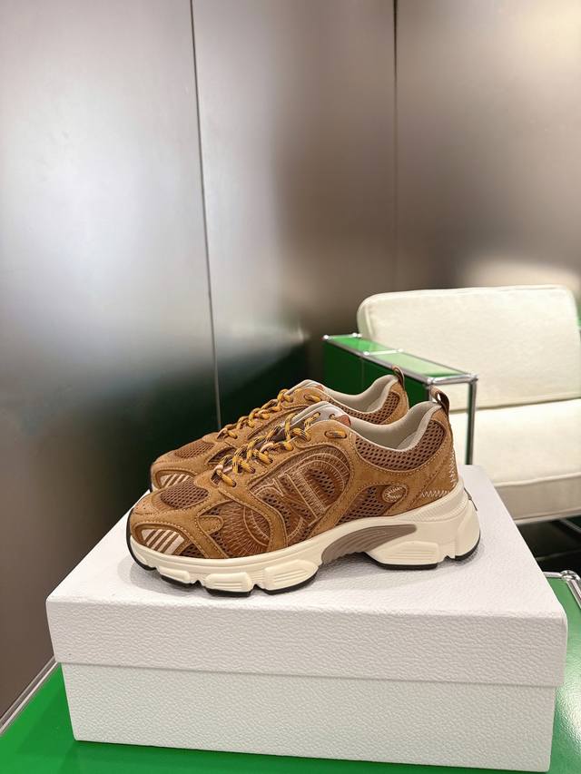 K020 Dior 迪奥Dior Vibe 运动鞋 DDD 这款 Dior Vibe 运动鞋融入 Dior 的高订精神,重新诠释经典跑鞋。白色网眼织物饰以 Oblique 印花图案,搭配金色和银色调层压皮革效果镶片,打造对比鲜明的时尚造型。以 3D 效果细节、后侧幸运星符号、鞋舌和后侧提拉环上的标志等经典细节进一步点缀。轻盈的鞋底饰以灰色星星,与各式休闲或优雅单品相得益彰,打造摩登造型。 DDD 码数:35-41 42可定做 DDD