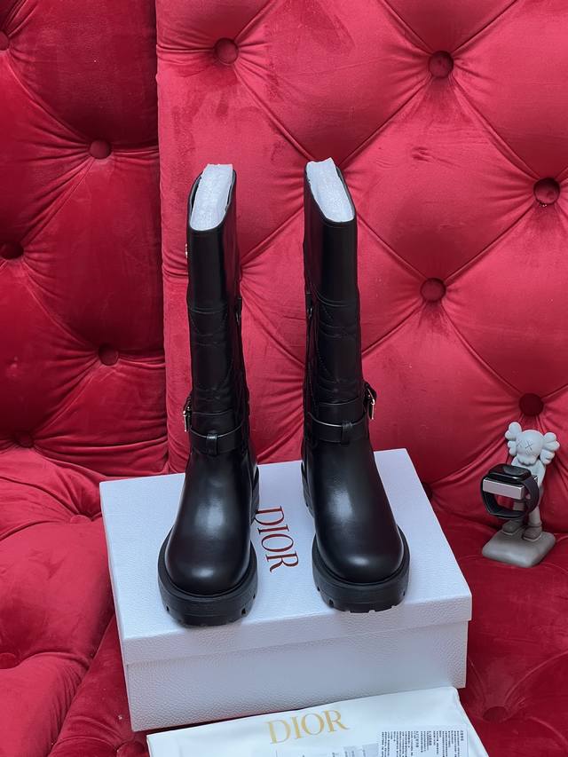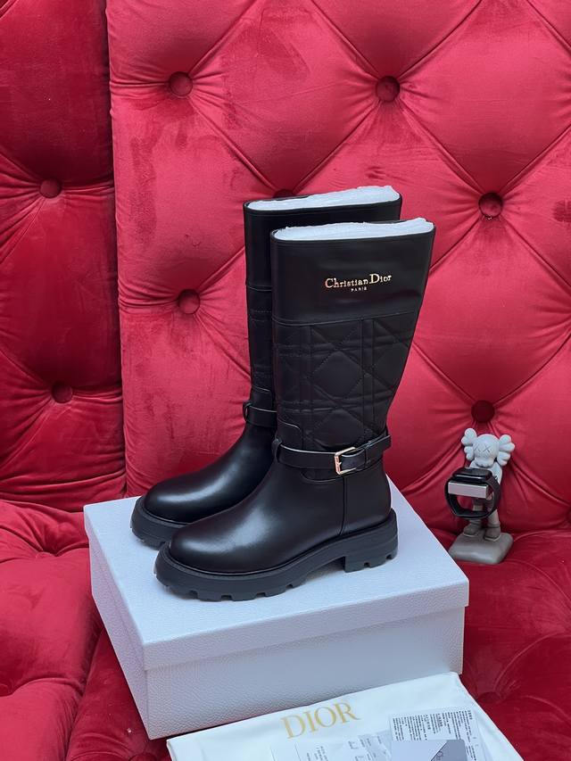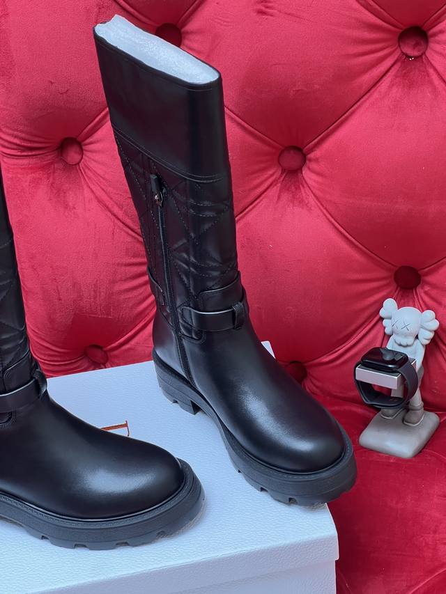 p布面 全皮 DDD 独家实拍 顶级版本 Dior 迪奥2026Ss秋冬新款D-Quest系列朋克风藤格纹电绣女靴 明星同款Cd字母Logo五金皮带扣机车靴 低跟厚底圆头一脚蹬骑士中筒靴 DDD 鞋面:进口原版小牛皮 DDD 内里:进口原版水染牛皮 DDD 鞋底:原版开模Tpu大底 原版开模五金扣 DDD 跟高:4.5Cm DDD Size:35-41 40.41定制不退换 DDD
